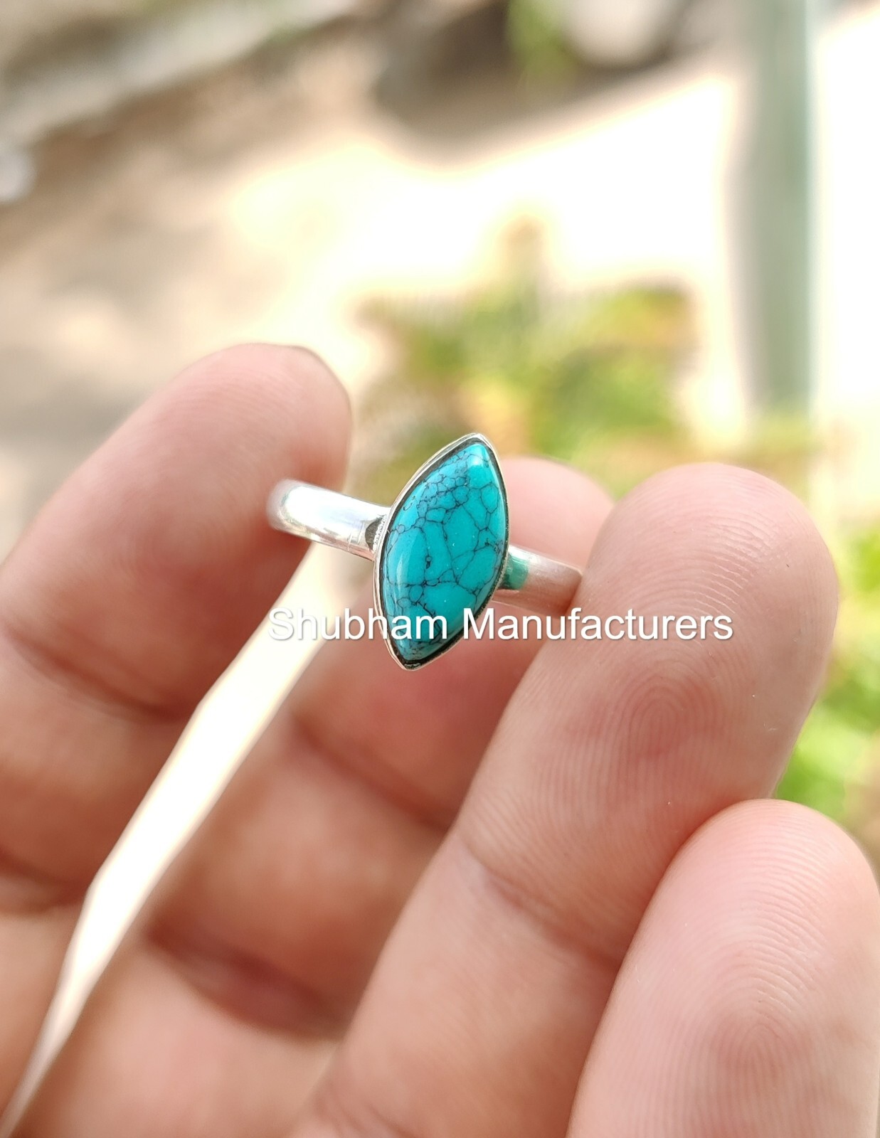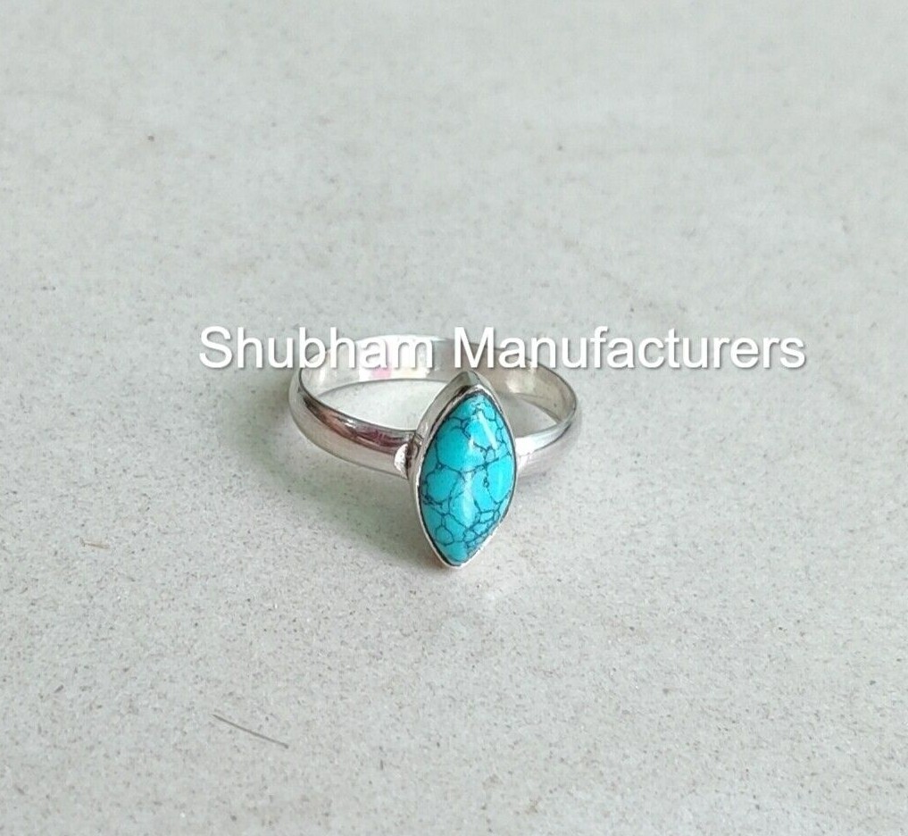 Genuine Turquoise Ring 925 silver Gemstone Birthstone statement Jewelry 5 -14 US