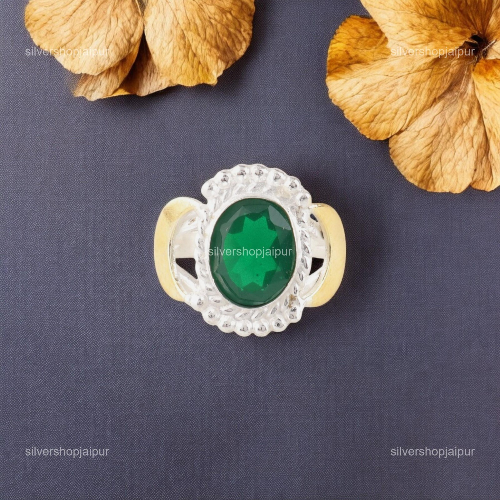 Oval Green Onyx Gemstone Ethnic Stackable Birthday Ring Jewelry 925 Solid Silver