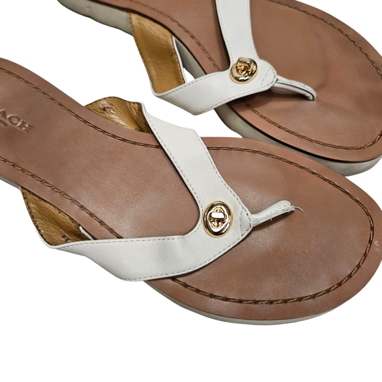 Coach Shelly White Leather Thong Platform Sandals 7 US 37 EU Preppy Old Money