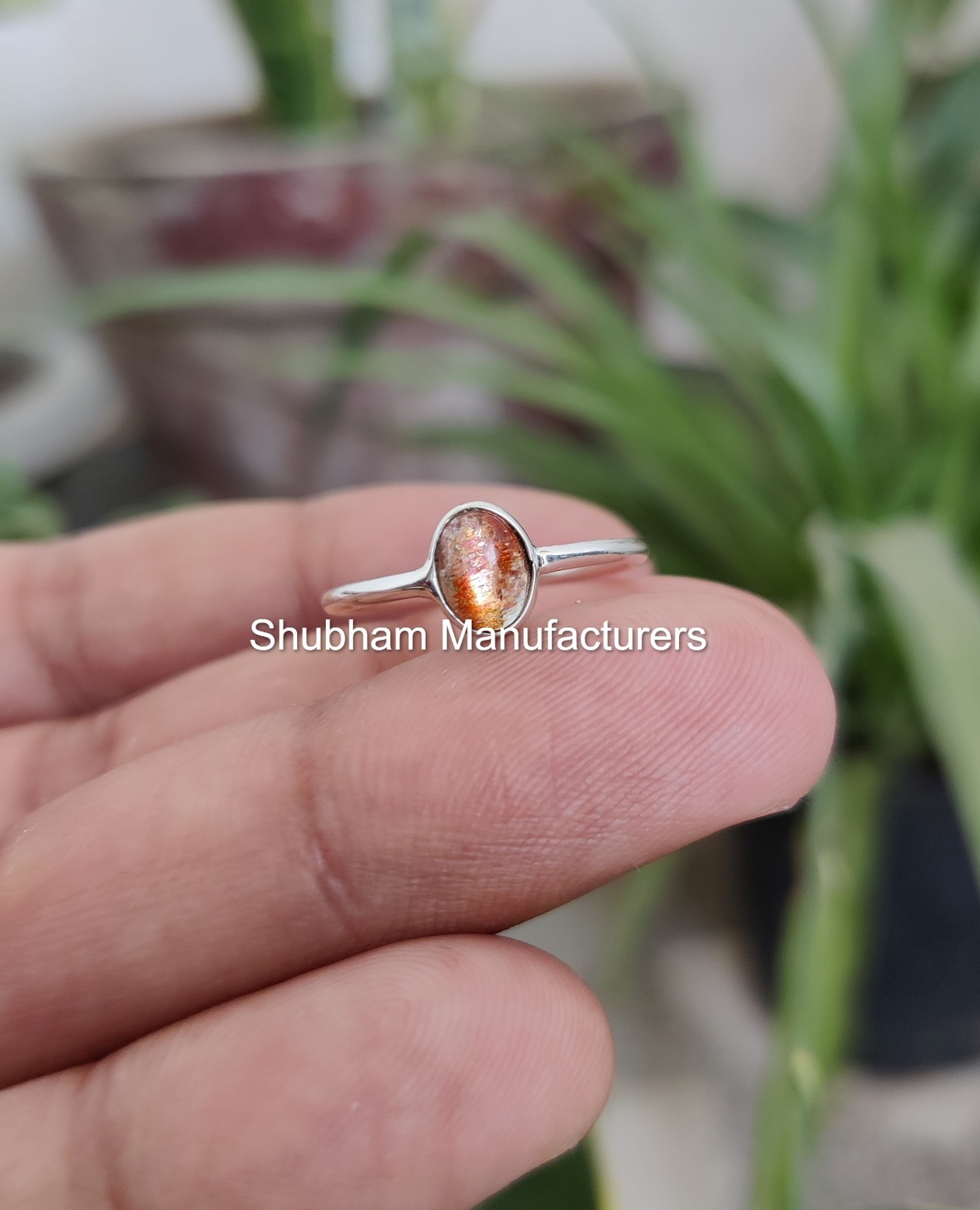 Natural Sunstone 925 Sterling Silver Gemstone Oval Shape Ring For Wife Love Wife