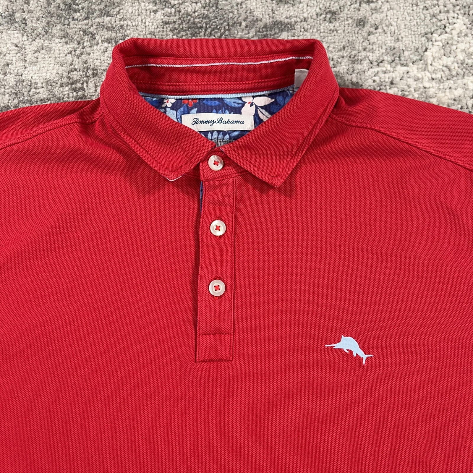 Tommy Bahama Polo Shirt Mens Large Red IslandZone Marlin Supima Performance Logo