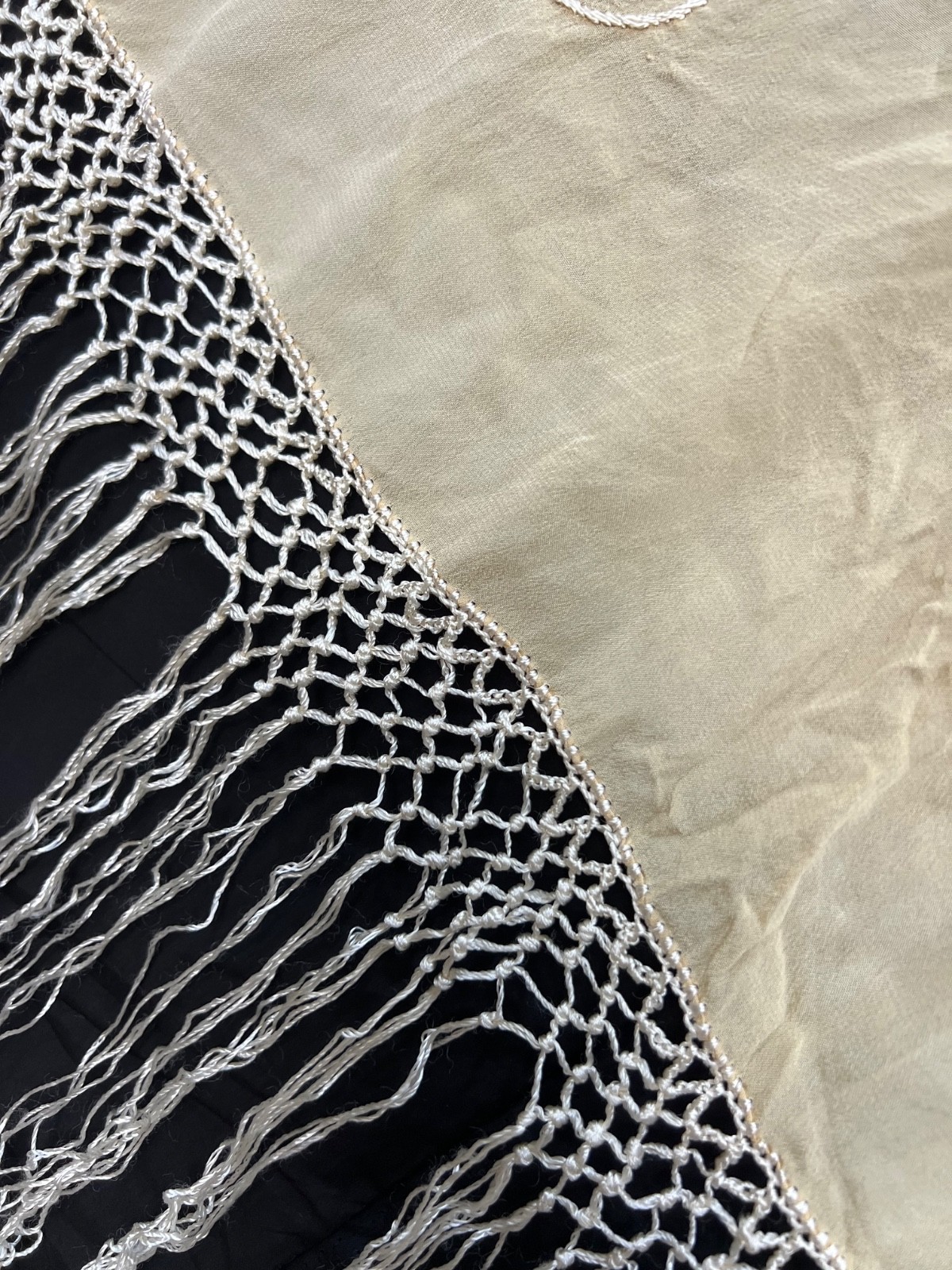 • Vintage Chinese Silk hand Embroidered Piano Shawl Fringe Floral wrap S60