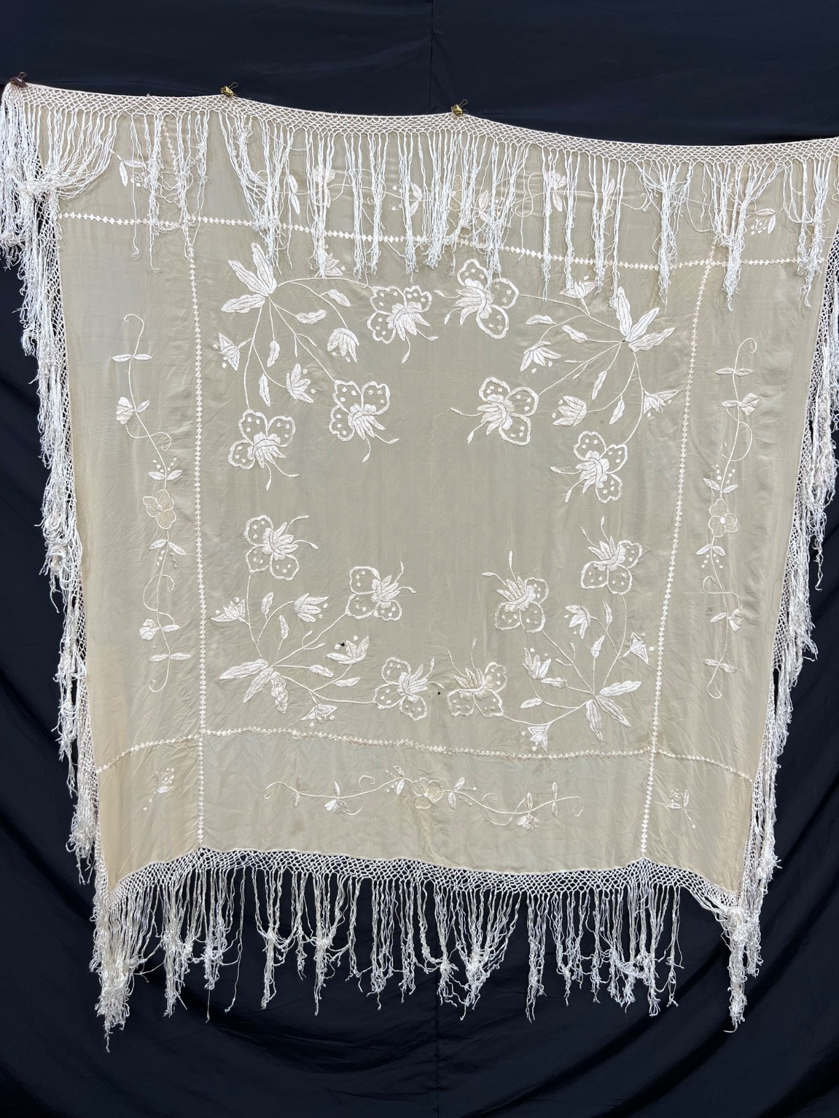 Vintage Chinese Silk hand Embroidered Piano Shawl Fringe Floral wrap S60