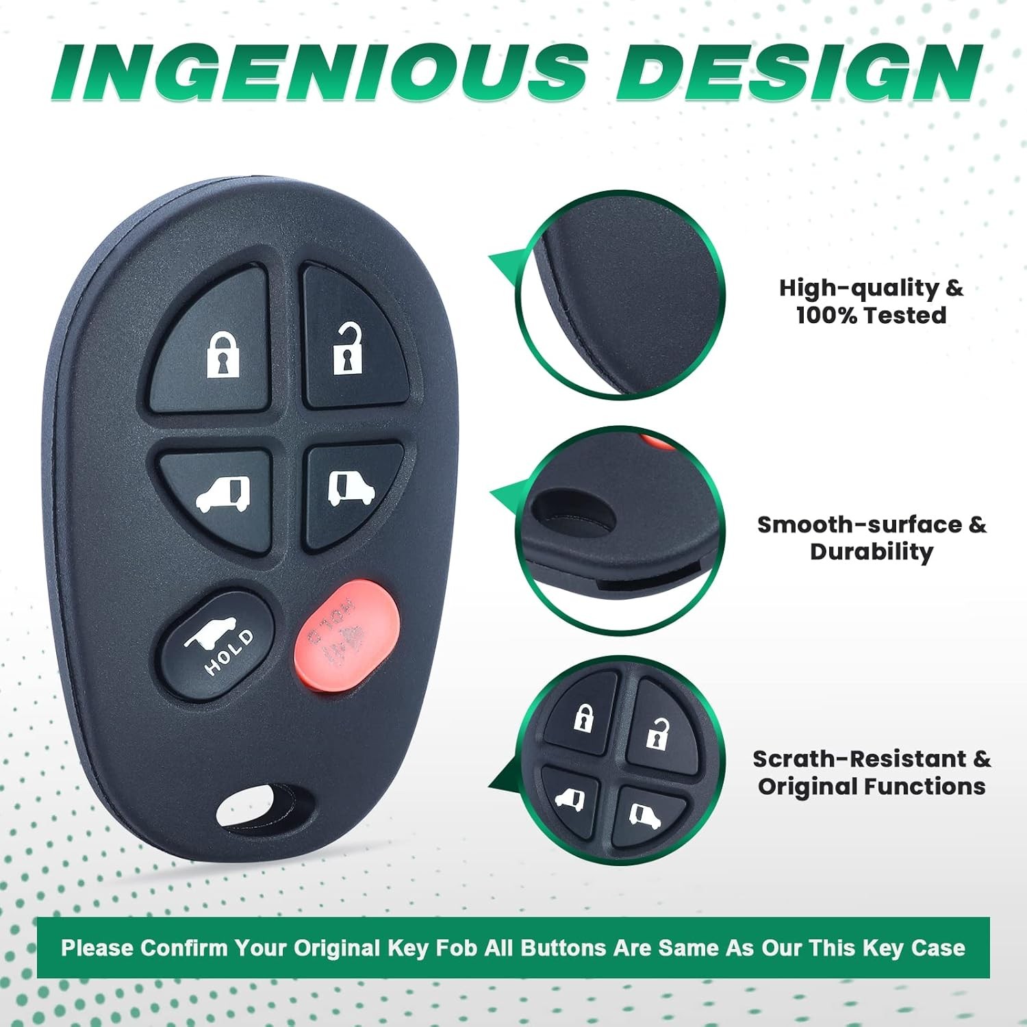 Keyless Entry 6 Button Remote Car Key Fob for Sienna 2004-2013 FCC ID: GQ43V 1