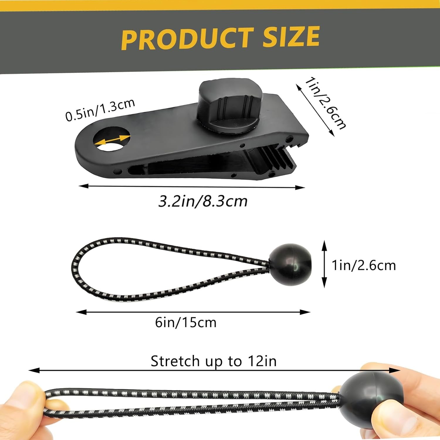 Included Components: 10 x tarp clips + 10 x ball bungee cords + 1x Bag
