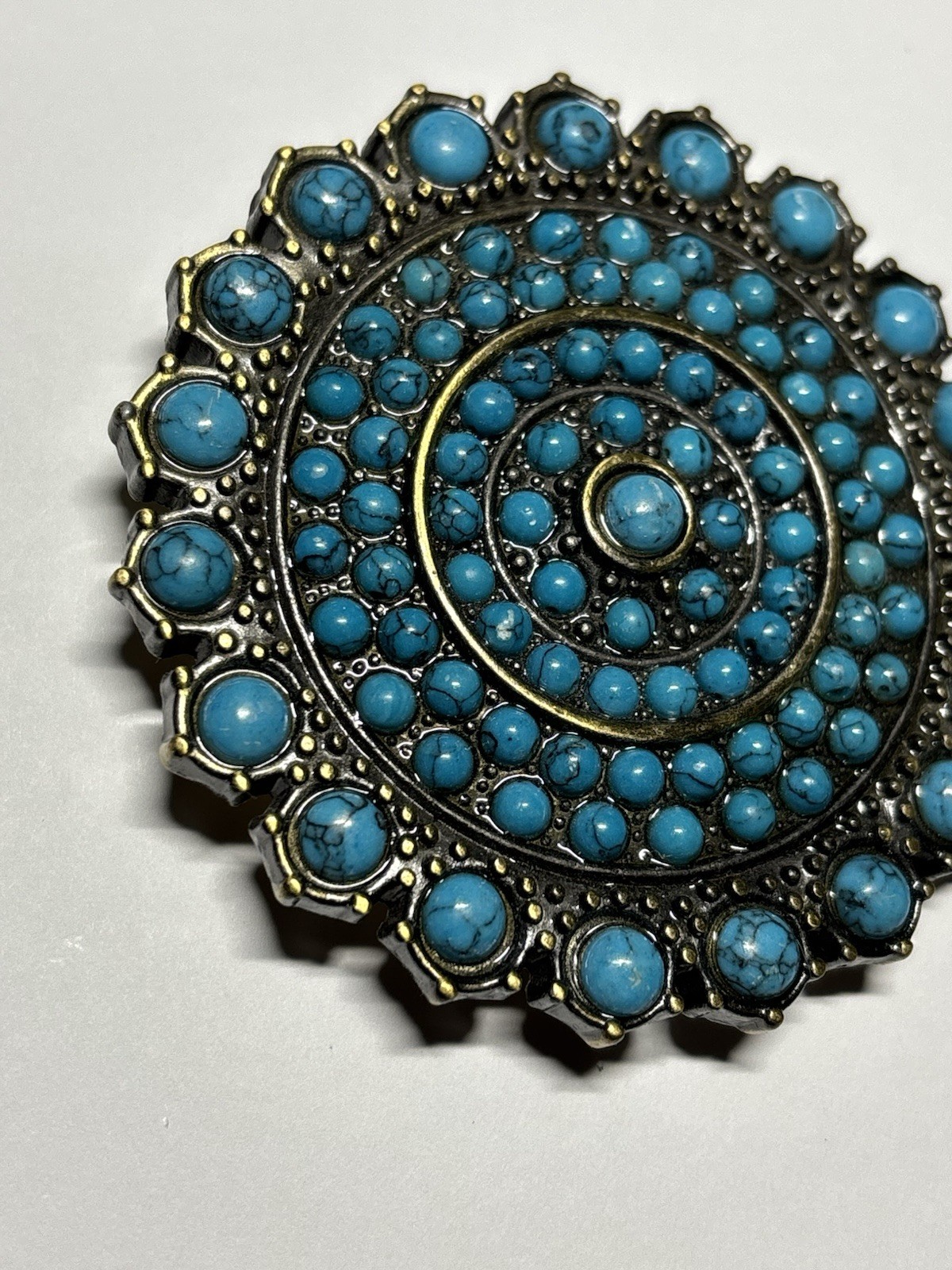 как выглядит Brass tone faux turquoise belt buckle. 3 inch wide фото