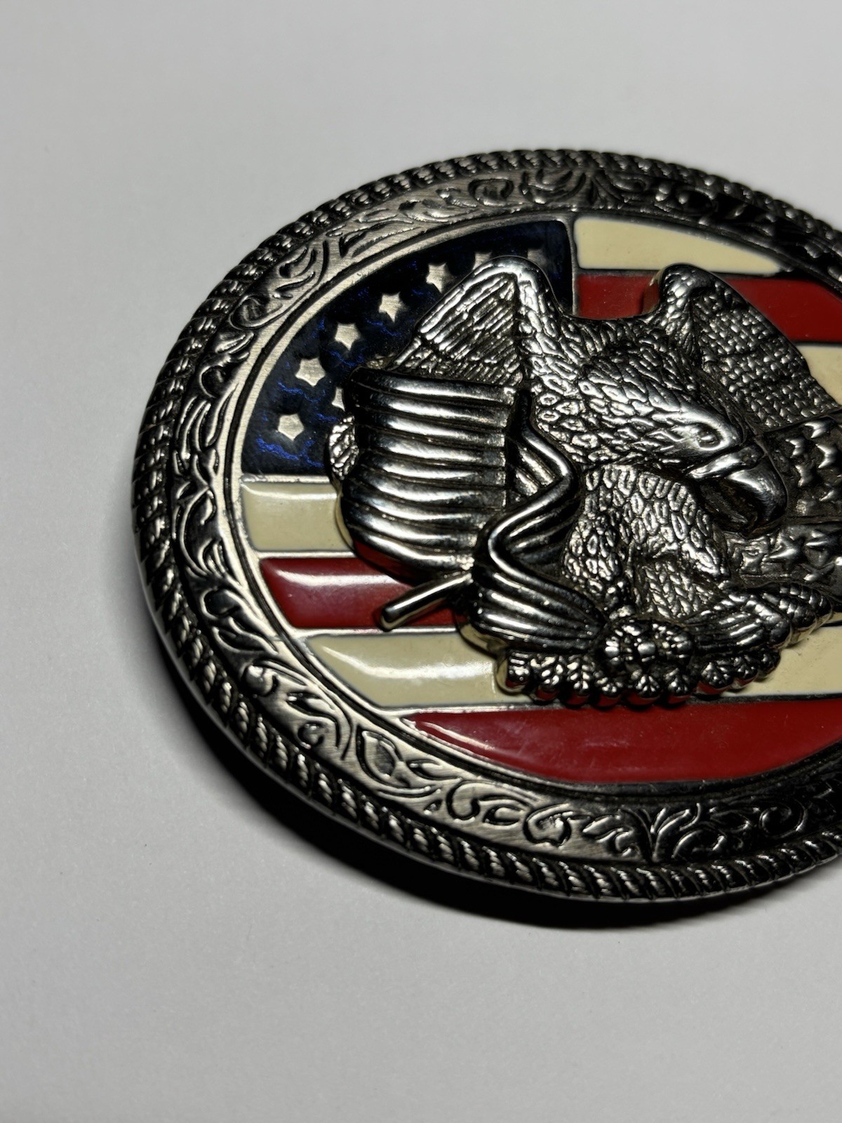 Belt Buckle American Flag Eagle Patriotic Silver Metal Red White Blue