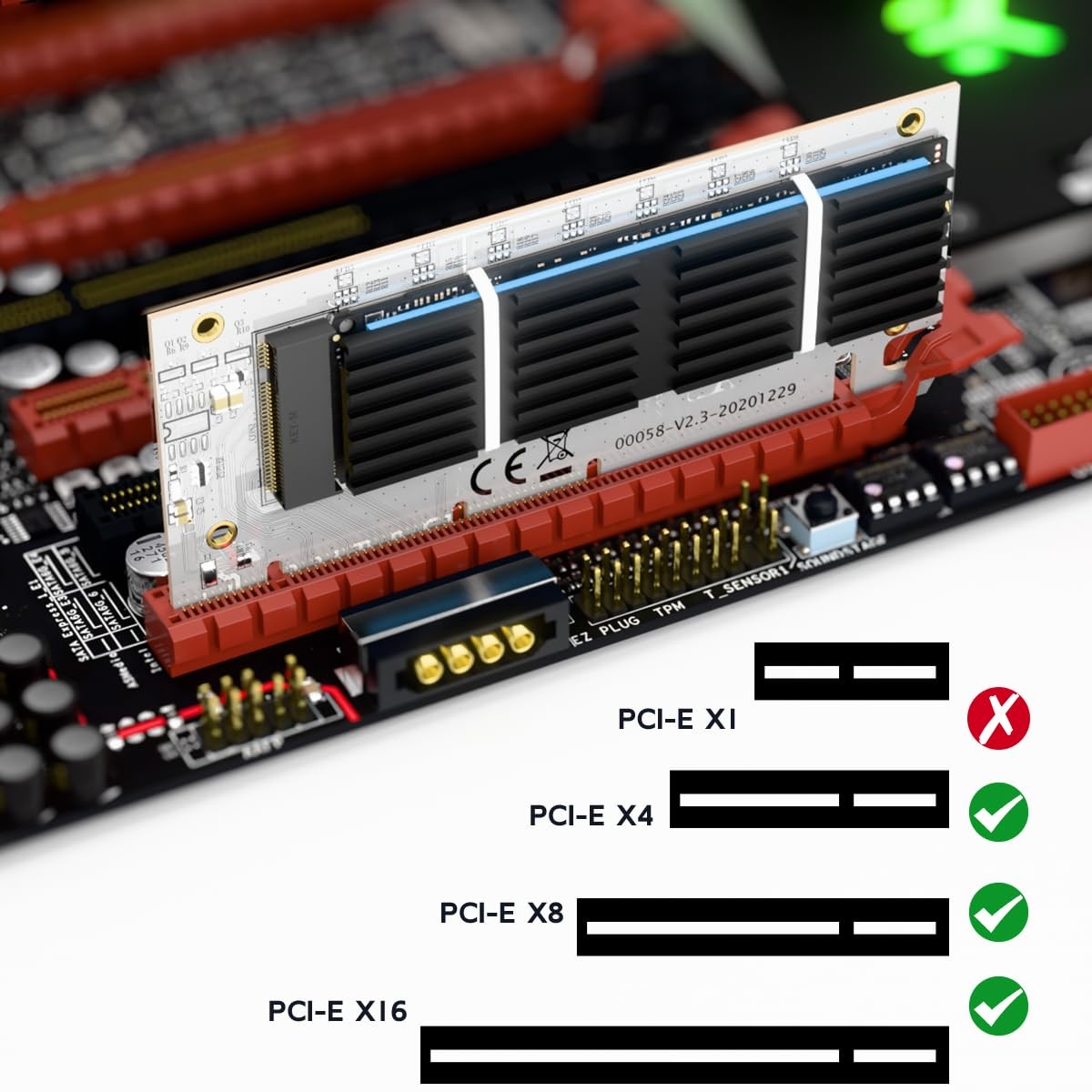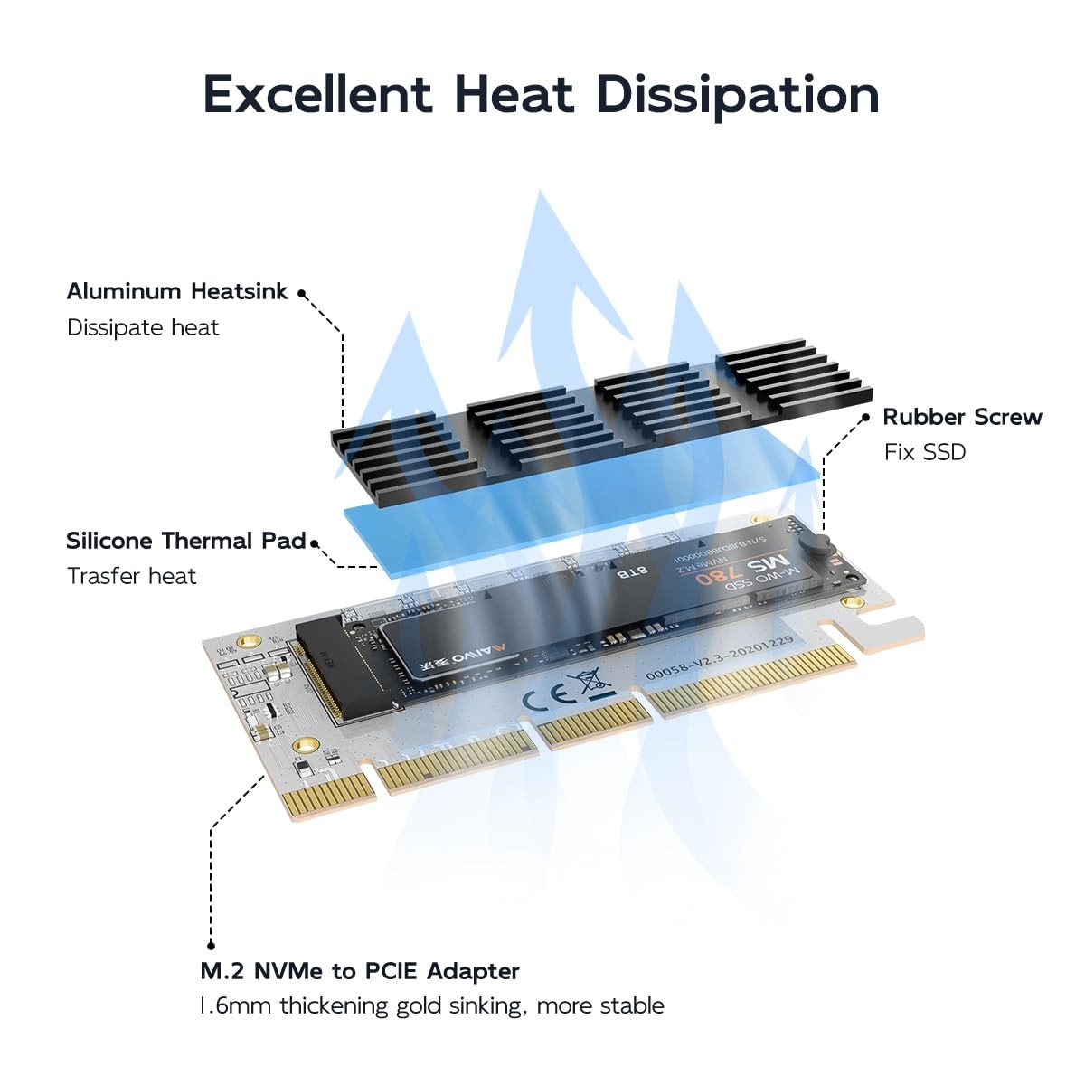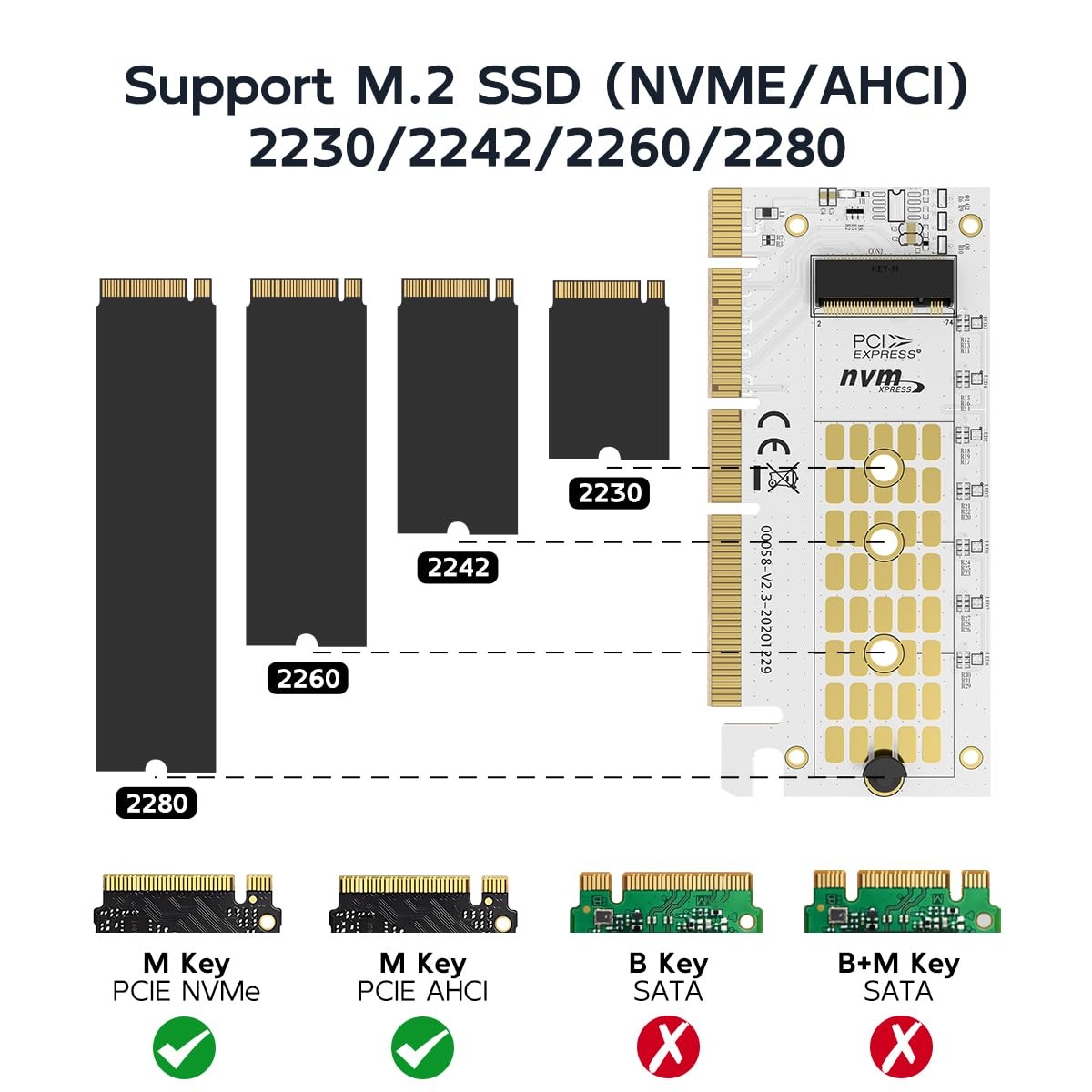 M.2 NVMe SSD to PCIe X16/X8/X4 Adapter Card with Aluminum Heatsink Expansion ...