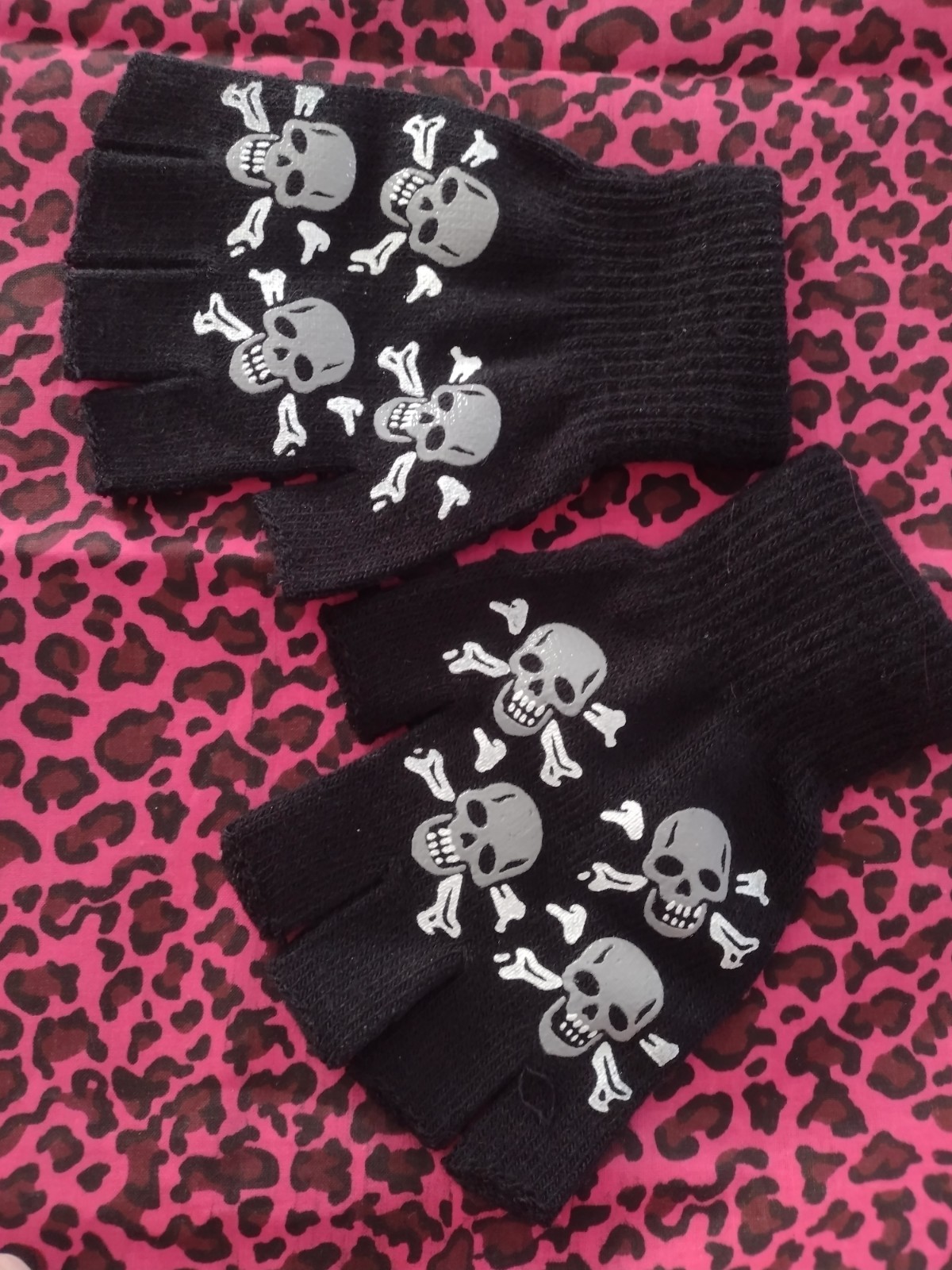 как выглядит Skull Patch Fingerless Gloves Halloween Gothic фото