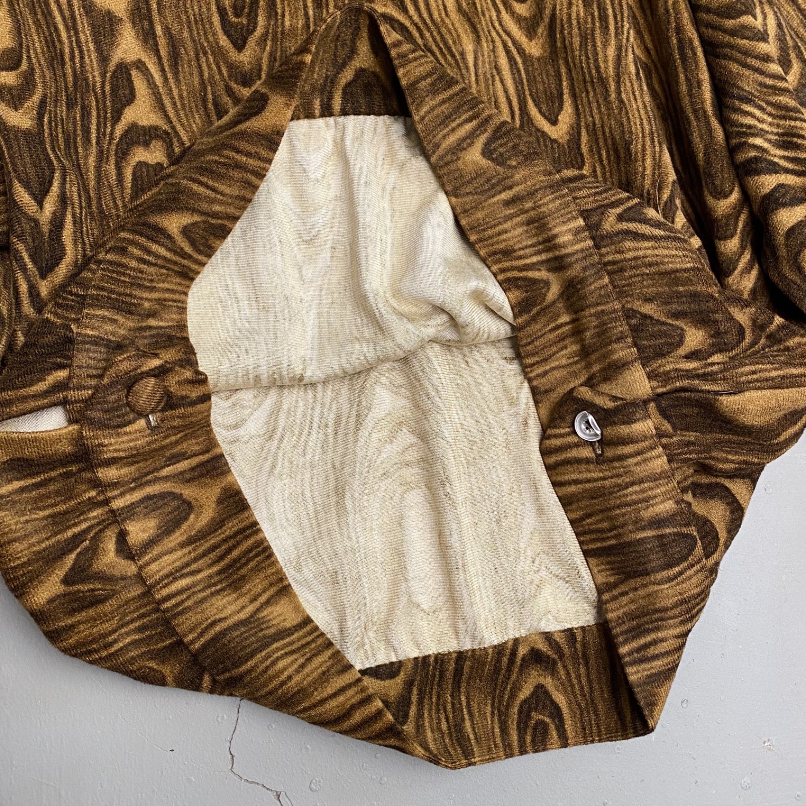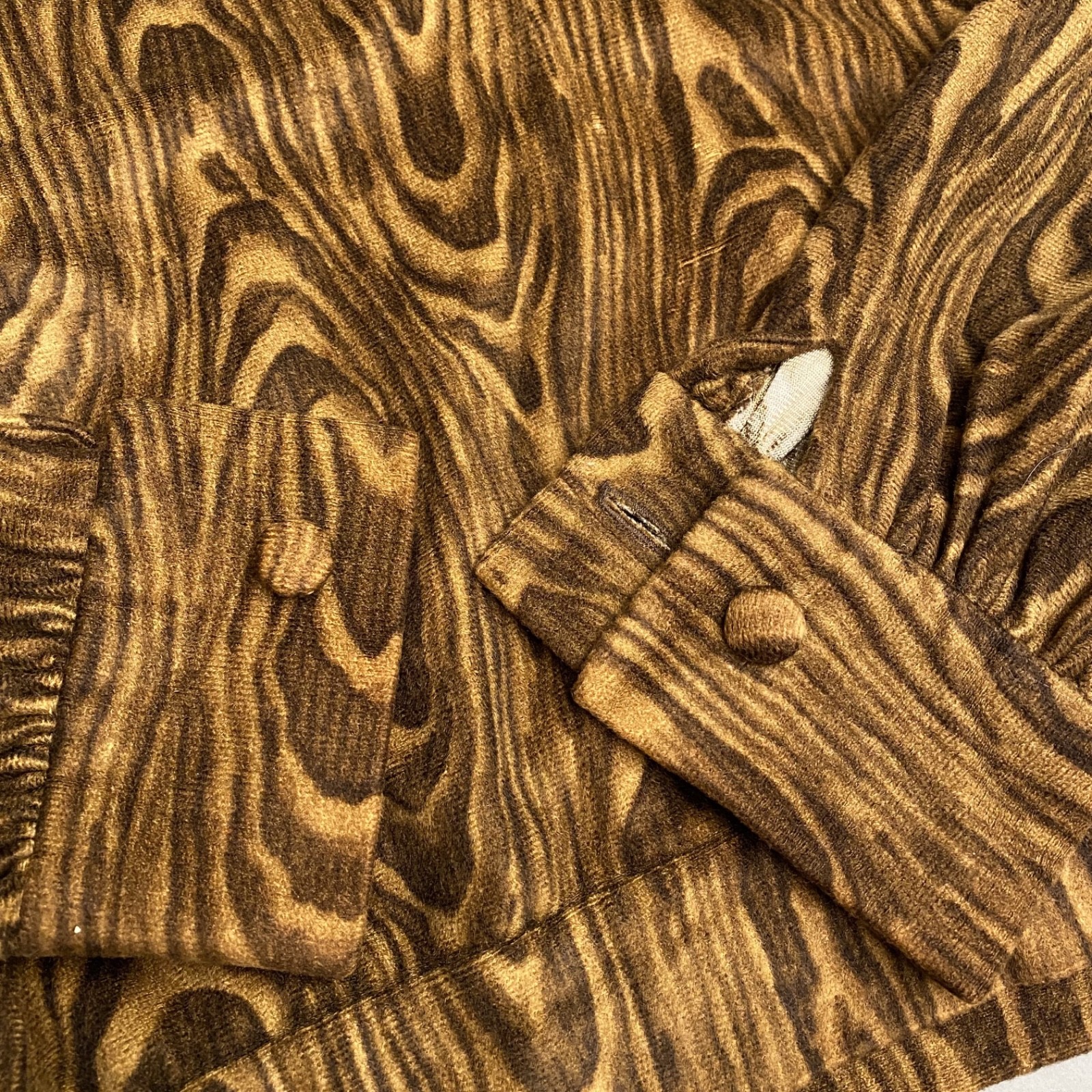 1970s Found in Brazil Wood Pattern Fleece Pullover Smock