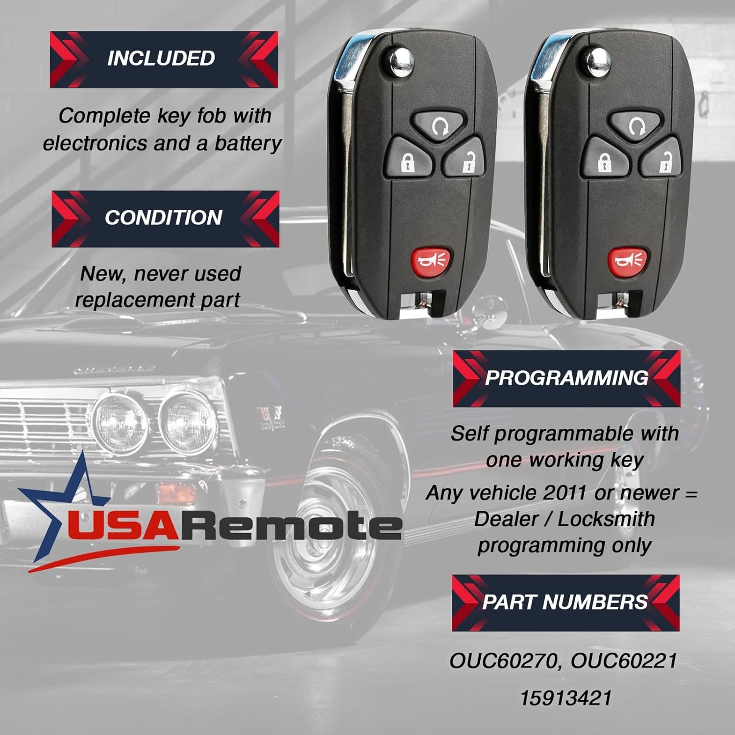 Key Fob fits 2007-2016 Keyless Entry Remote 15913421 , g-421-flip 2