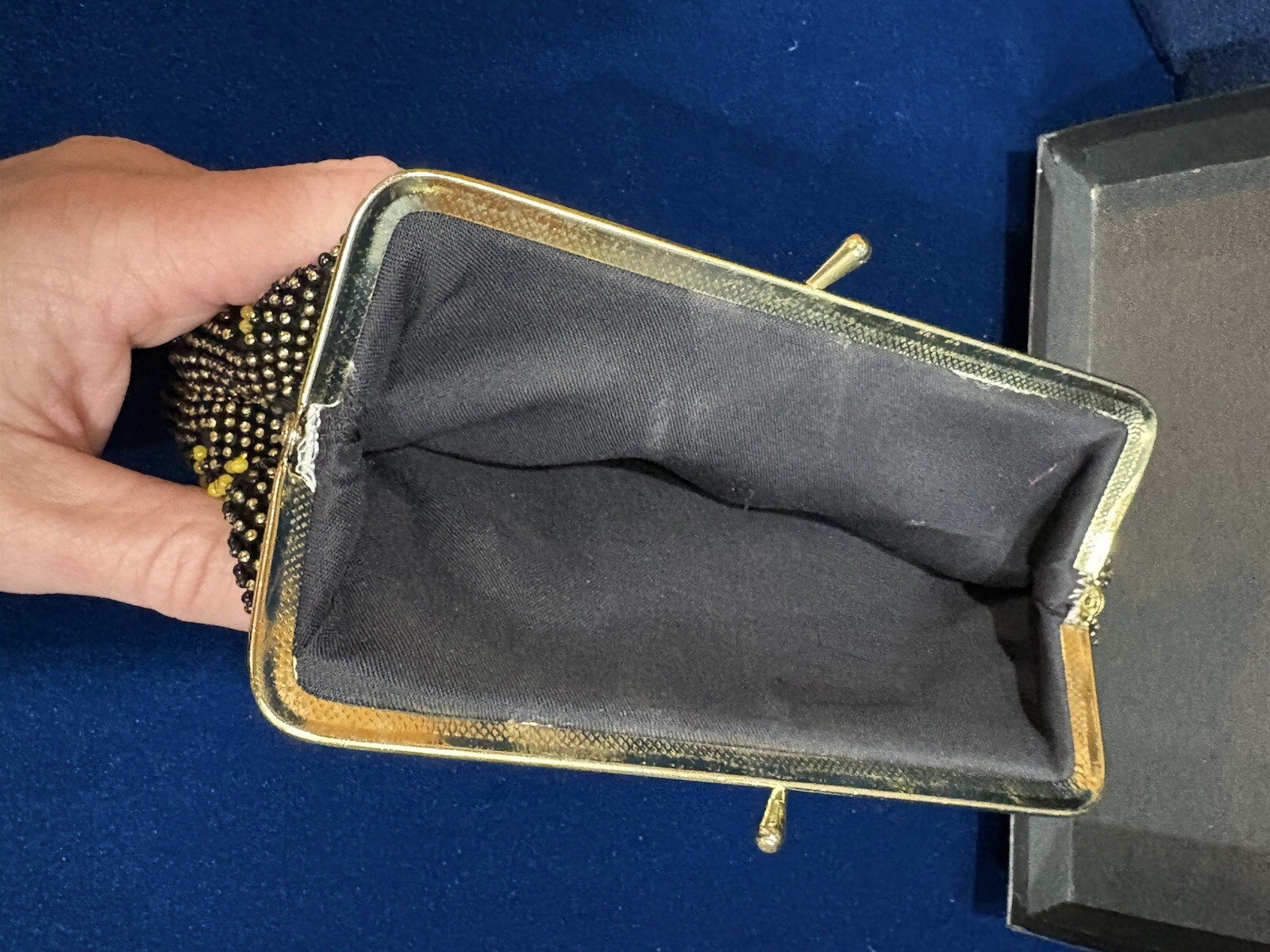 как выглядит Vintage 1970s MCM Flower Beaded Cloth Clutch Evening Purse Kiss Latch Boho Style фото