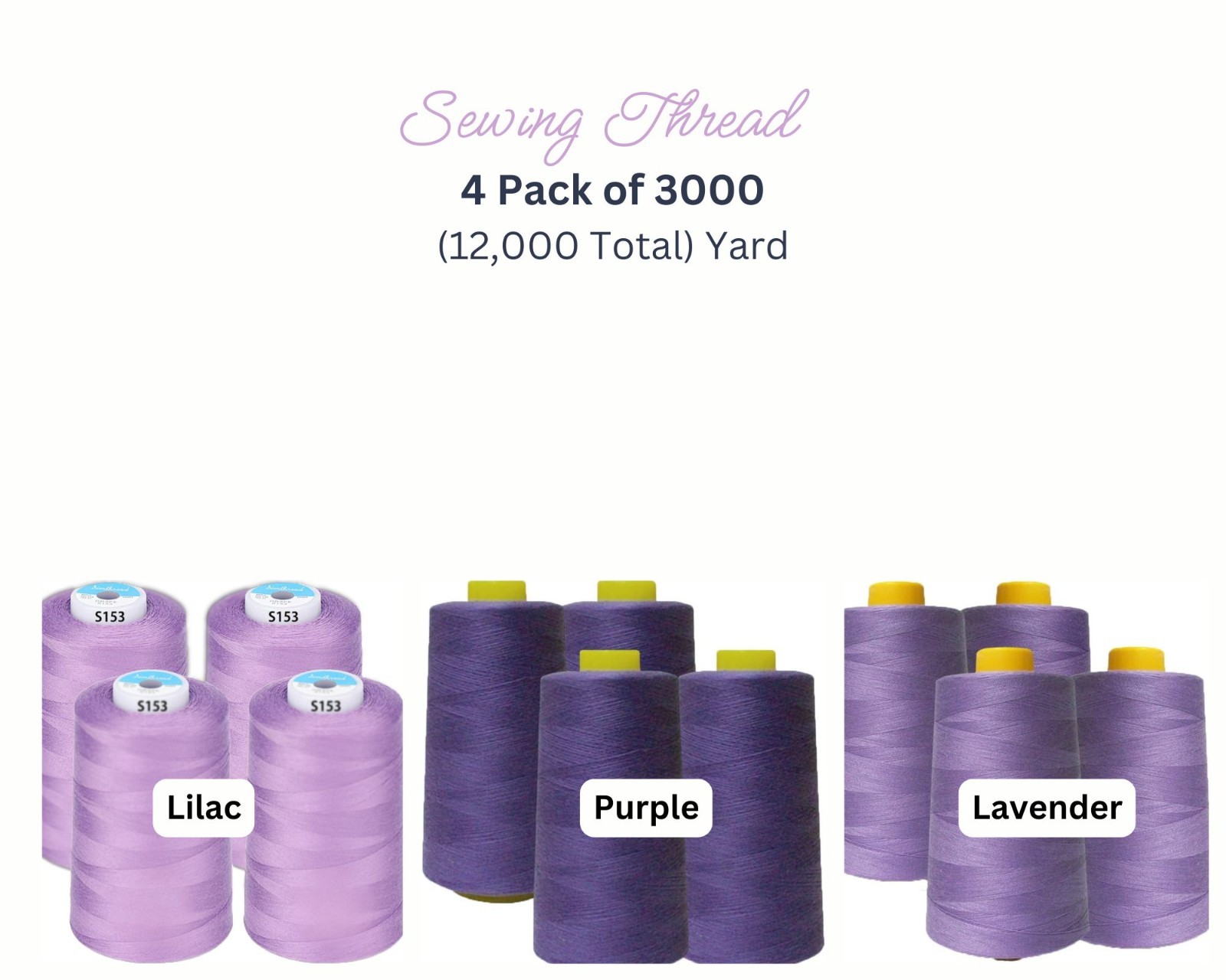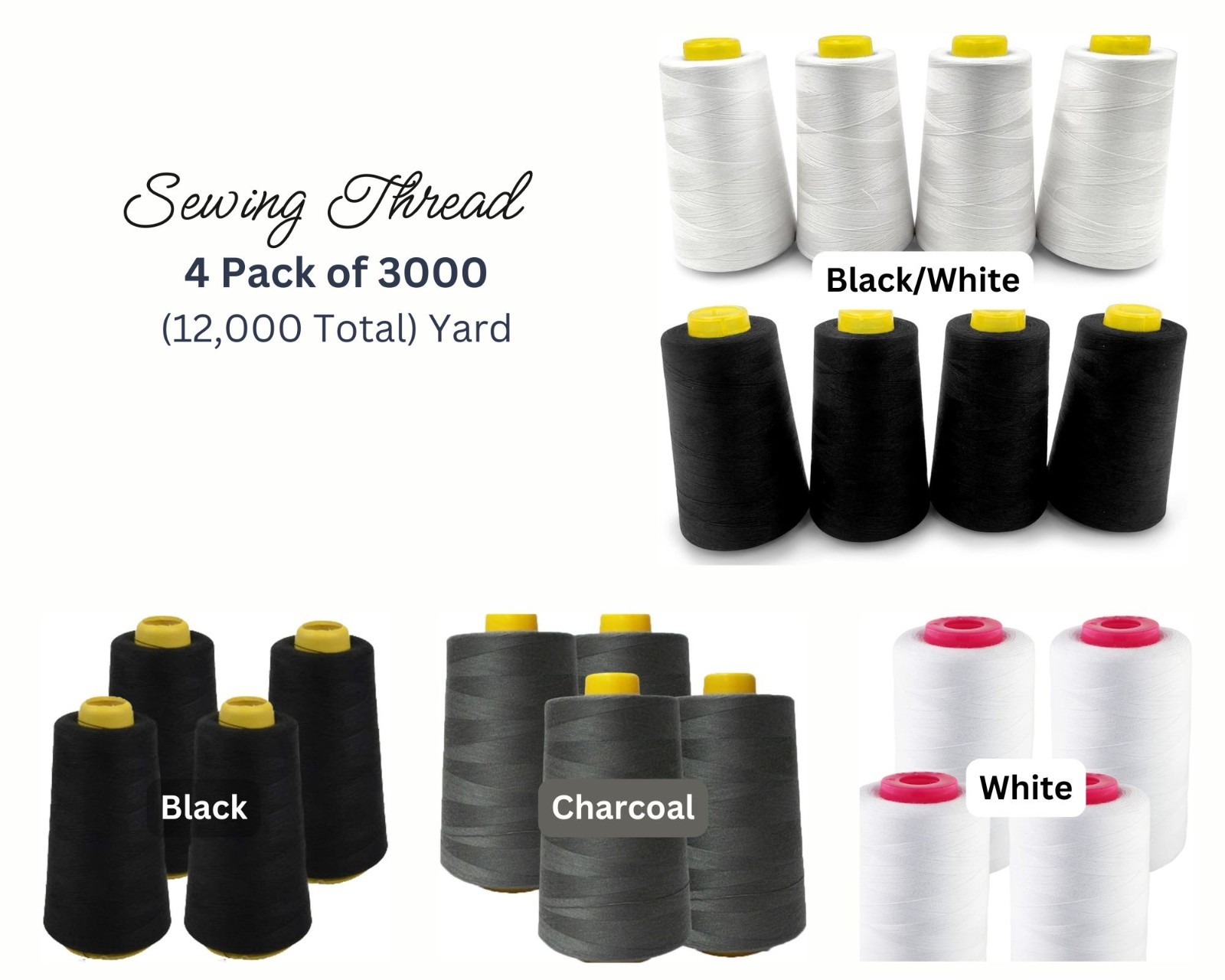 4Pack of 6000 Yard Spools Sewing Thread All Purpose Spun Polyester Overlock Cone