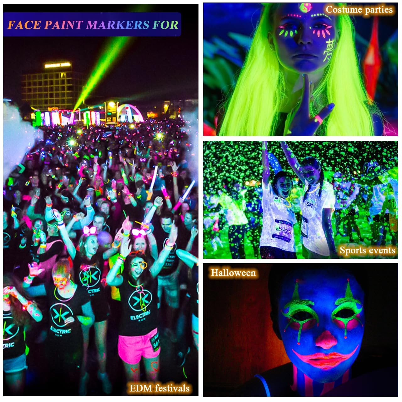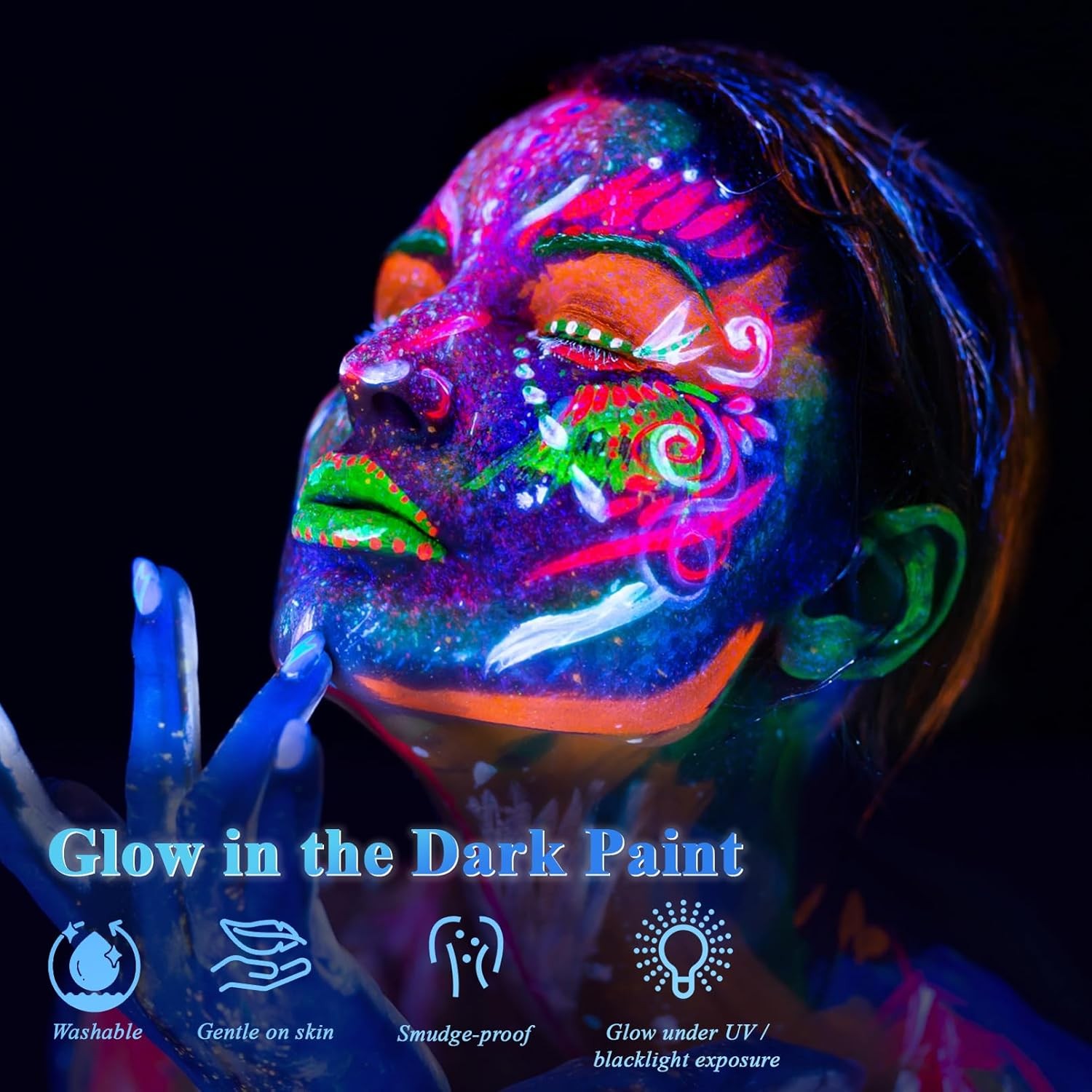 Glow in the UV Light Paint, Non-Toxic Neon Face Paint, Washable Compact Glow F