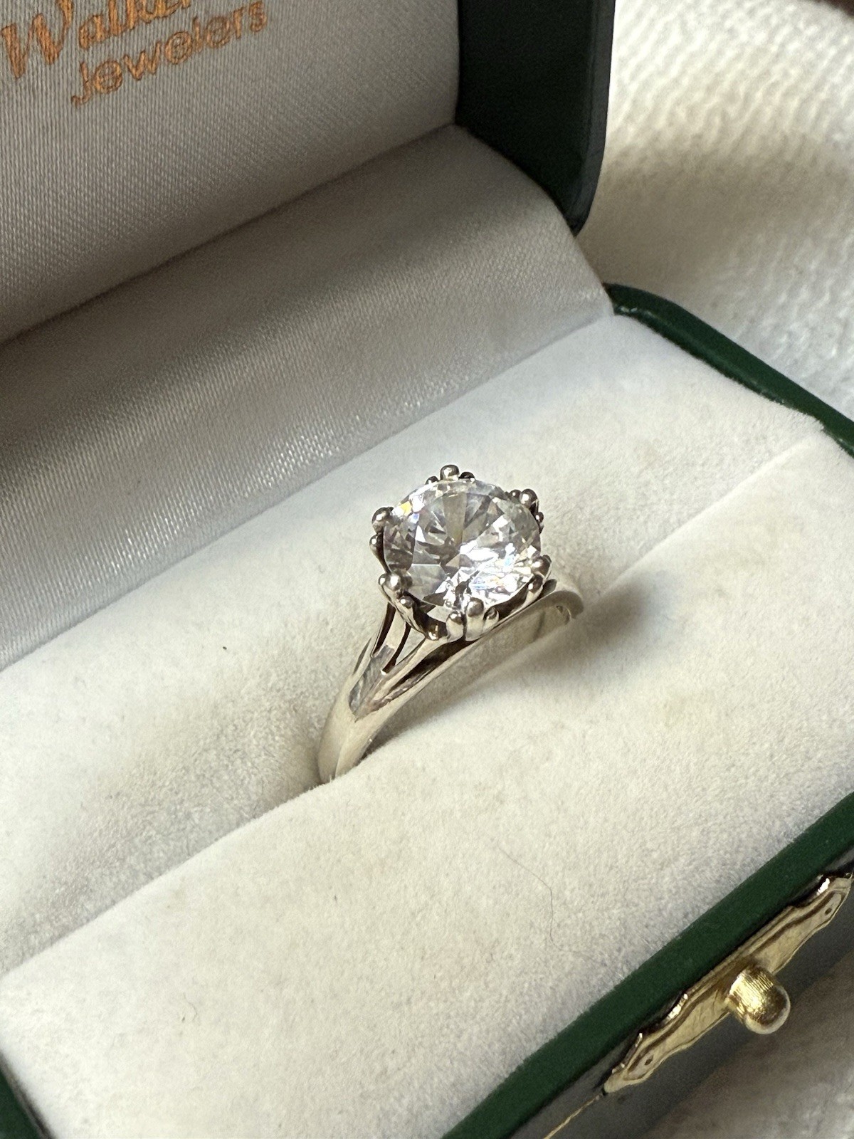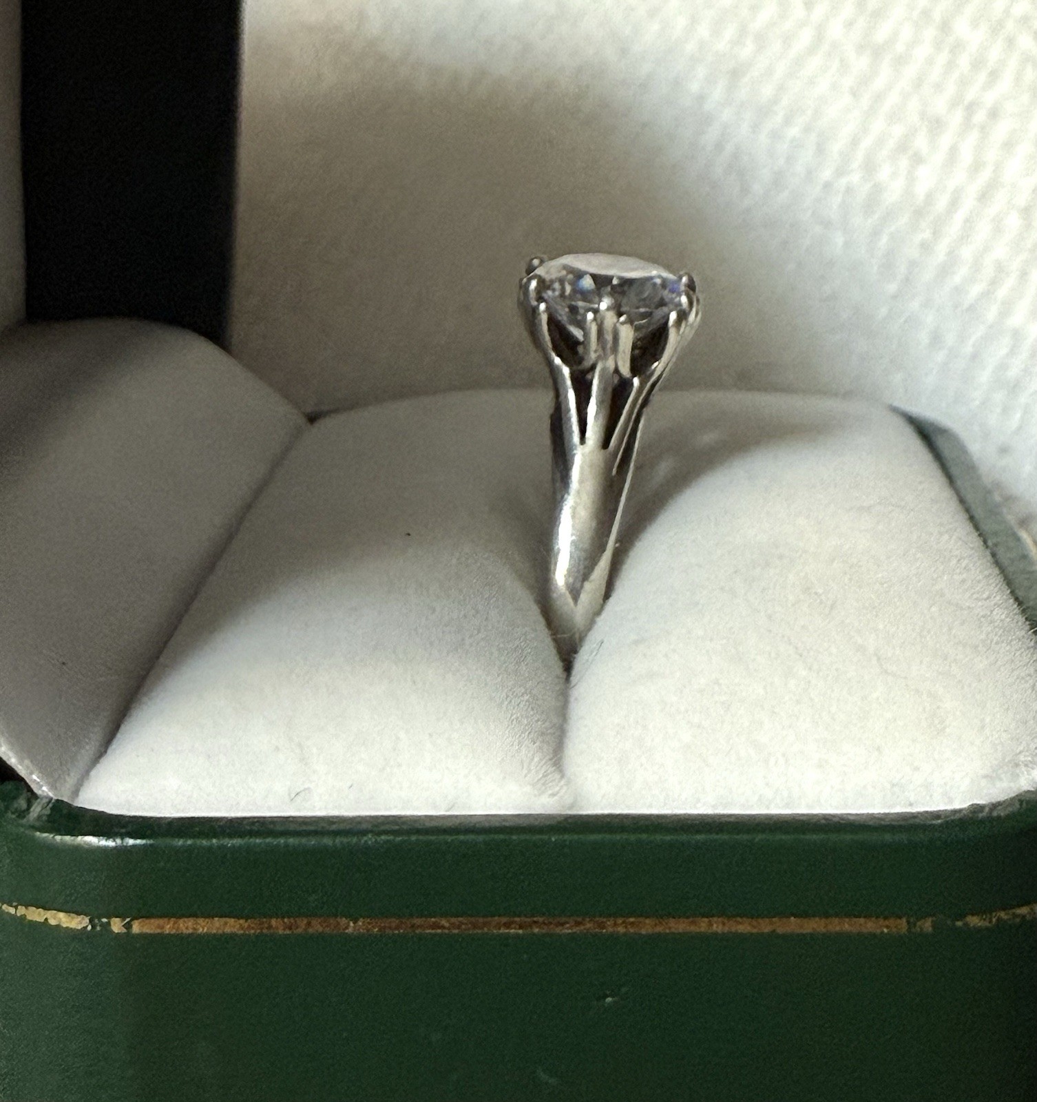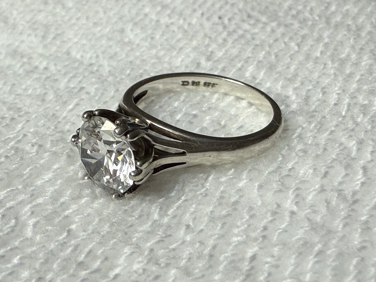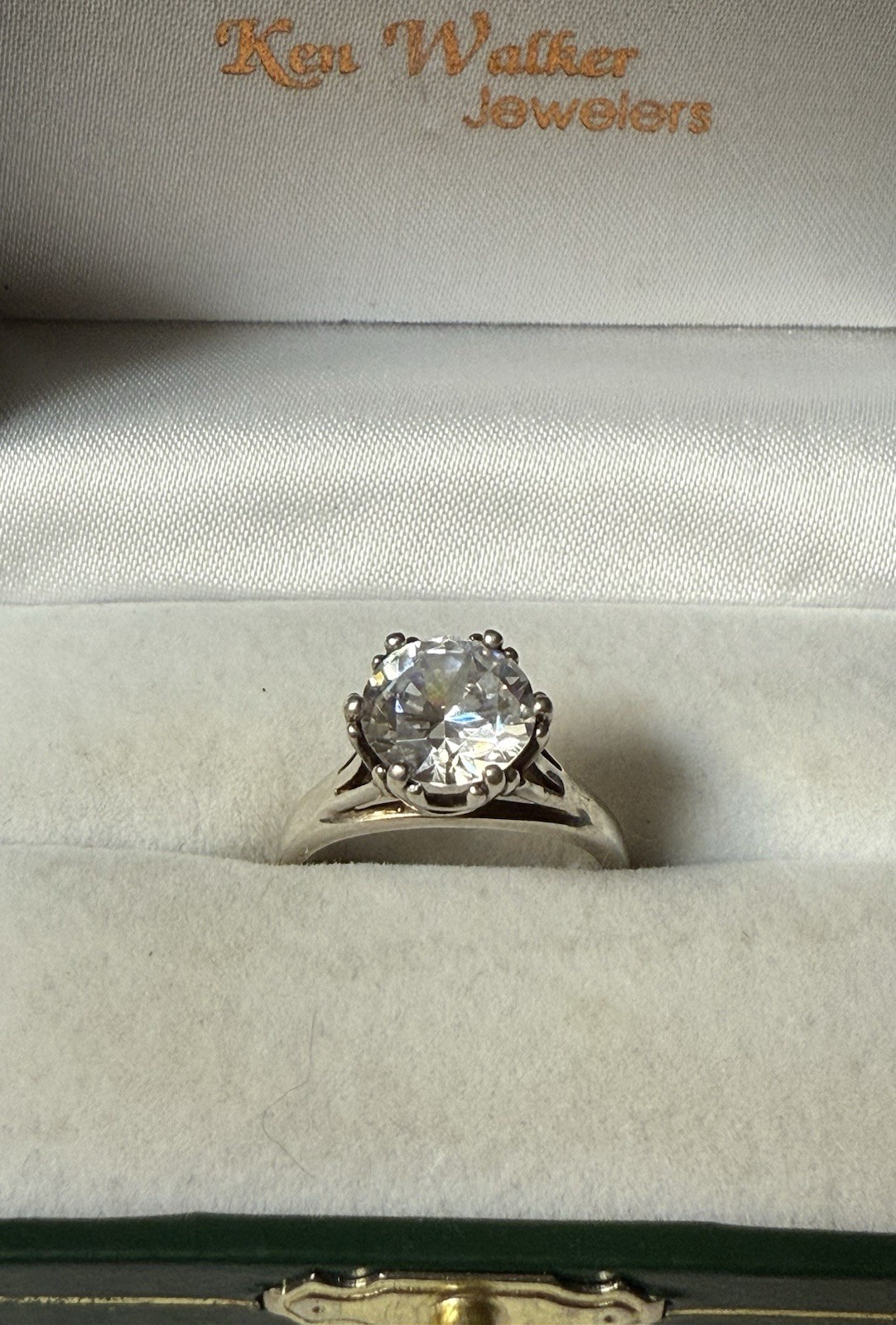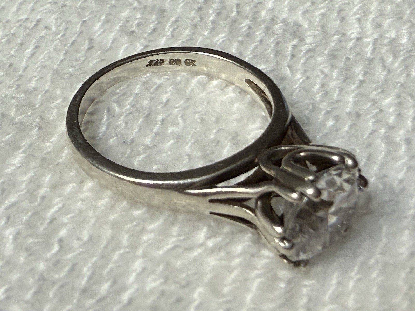 Sterling Silver CZ Cathedral Art Deco Solitaire Engagement Ring, Size 6.5