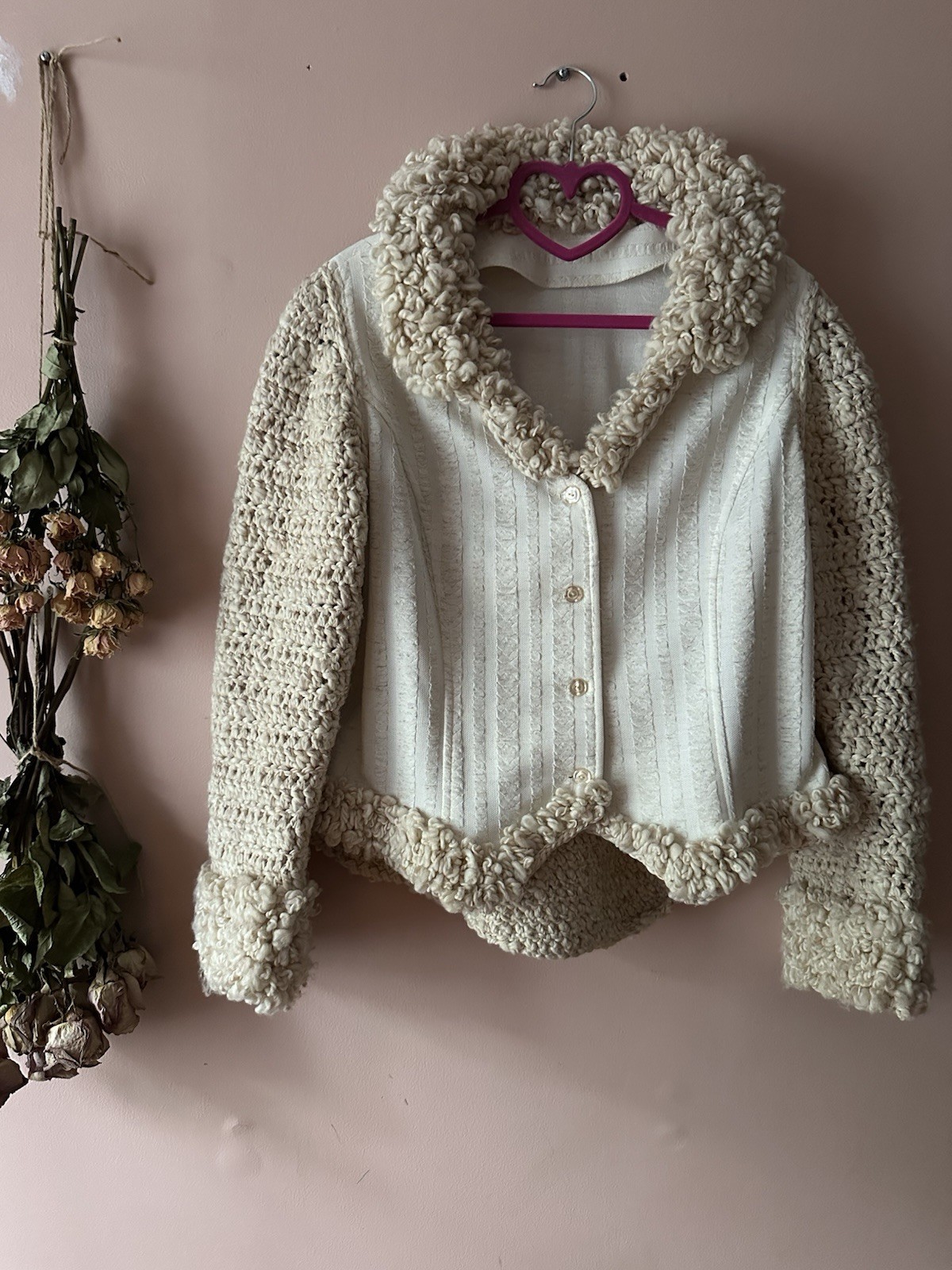 Vintage 70s Cream Ivory Crochet Jacket Blazer Boho Hippie M