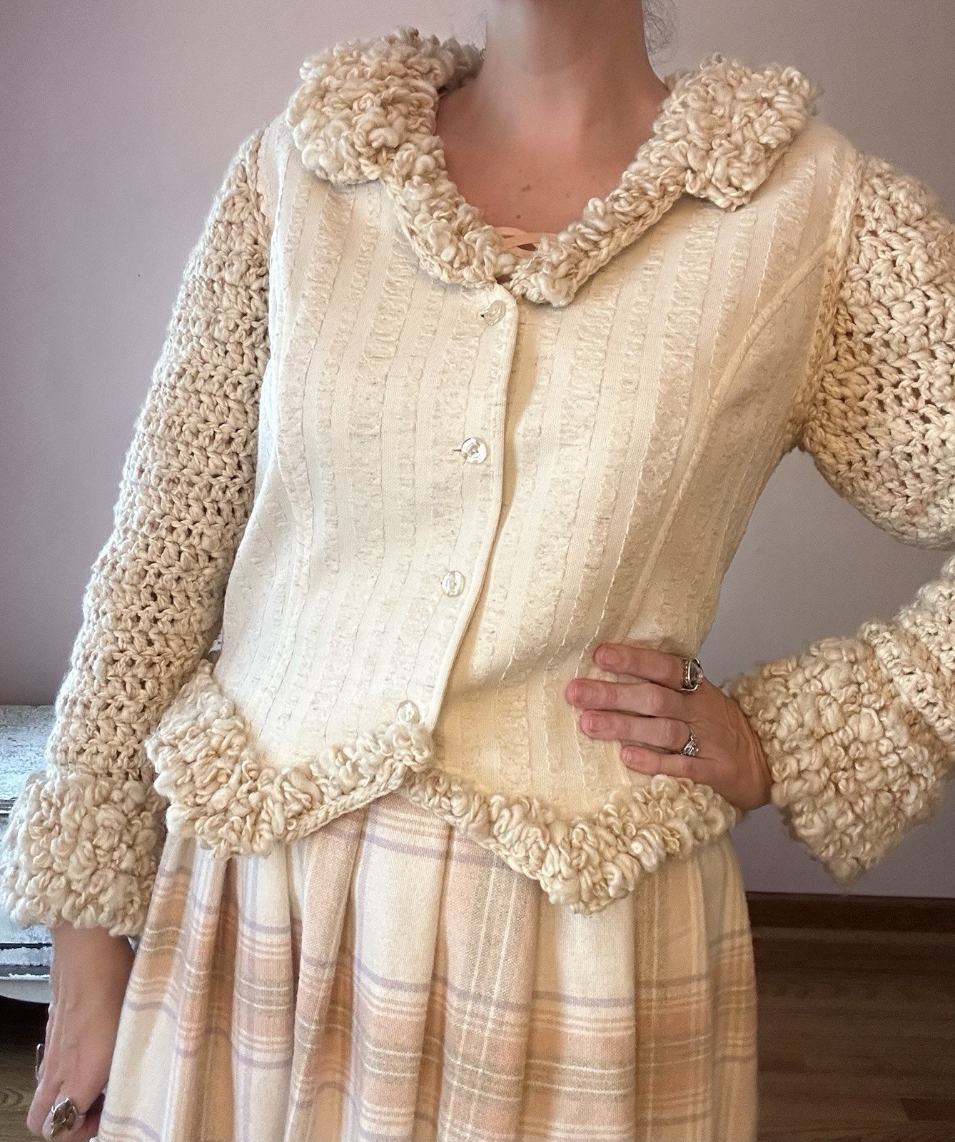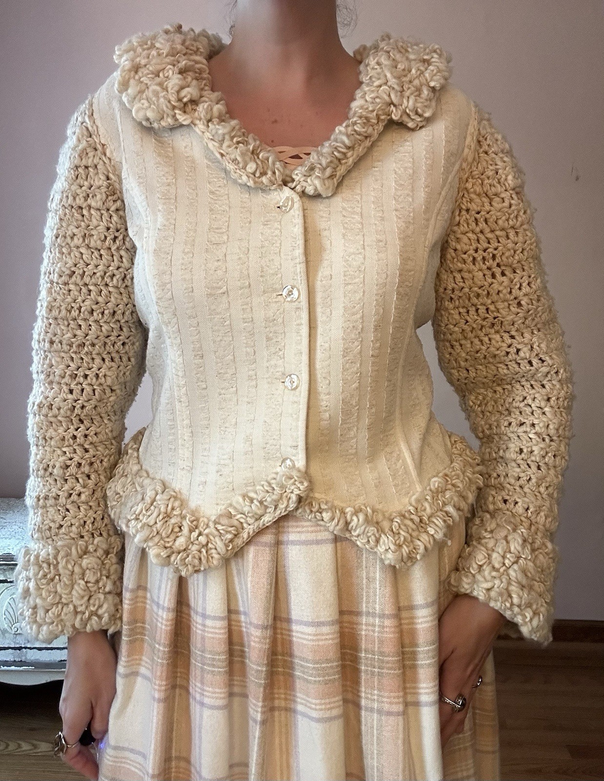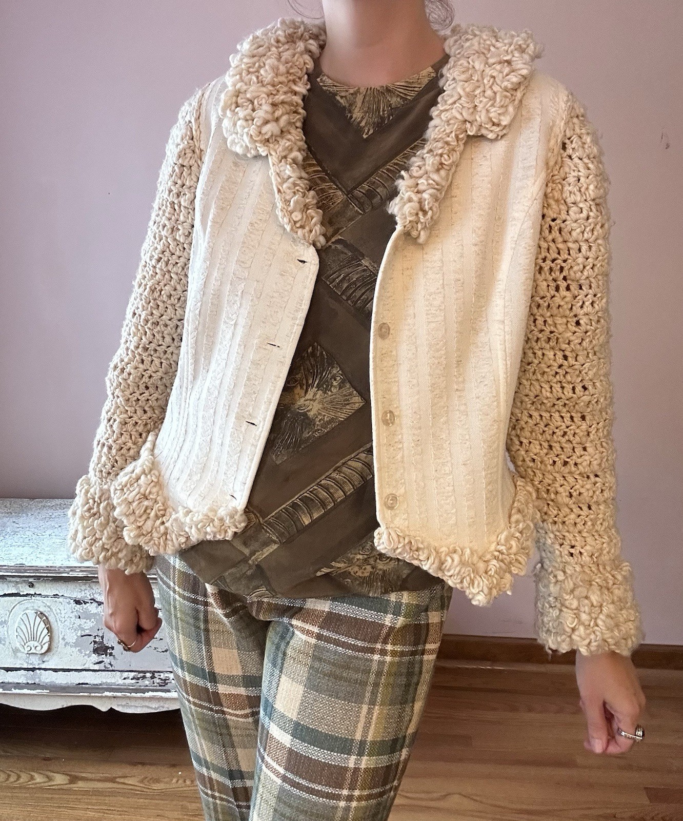 как выглядит Vintage 70s Cream Ivory Crochet Jacket Blazer Boho Hippie M фото