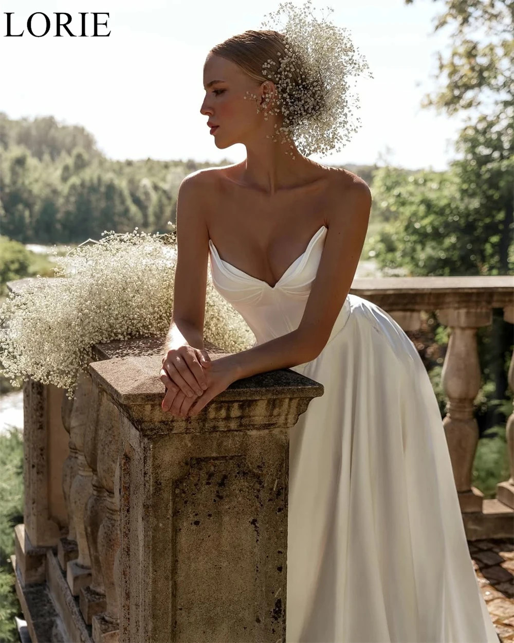 Elegant Satin Wedding Dresses A-Line Strapless Lace-up V-Neck Pleated Chic Bride