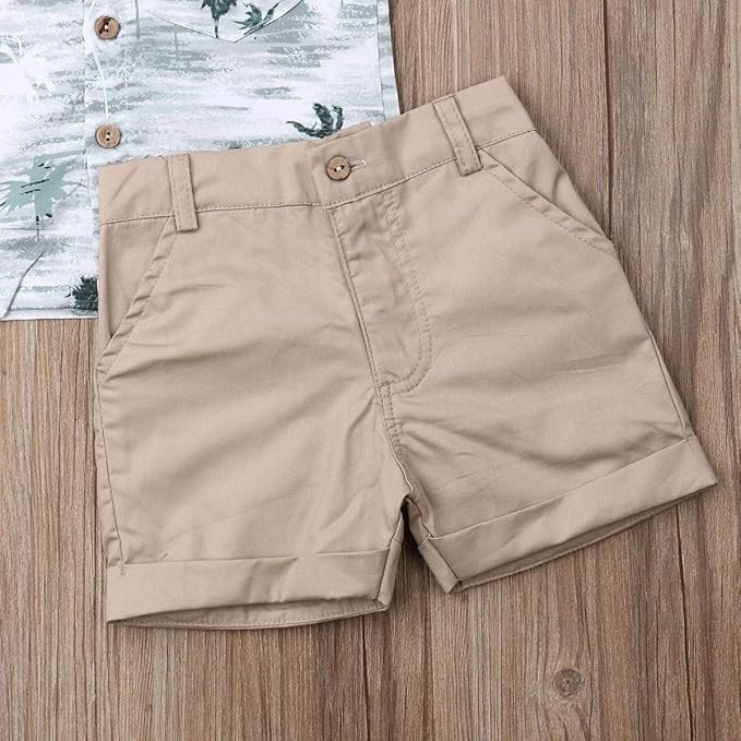 Toddler Kid Boys 2PCS Summer Outfit Set Button Lapel Print Shirt Shorts Casual