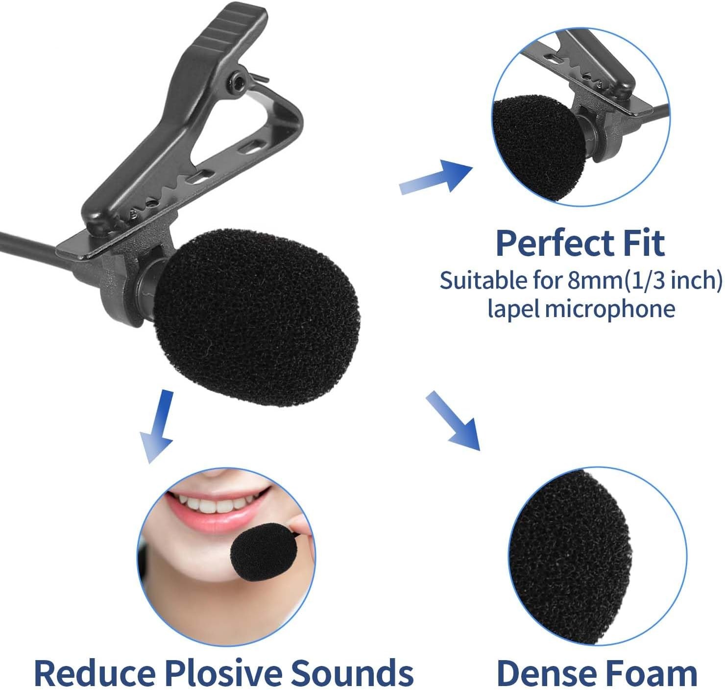Microphone Cover Furry Windscreen Foam Set for Lavalier Lapel grey