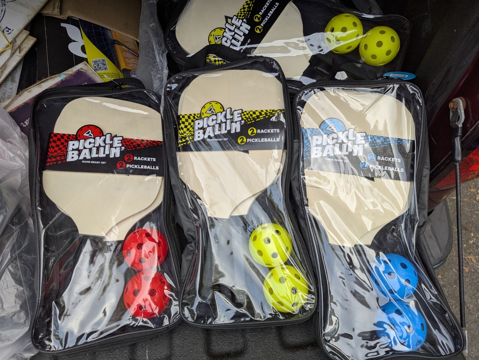 как выглядит NEW PICKLE BALLIN Game Ready Set - 2 Solid Wood Rackets 2 Yellow Pickleballs фото