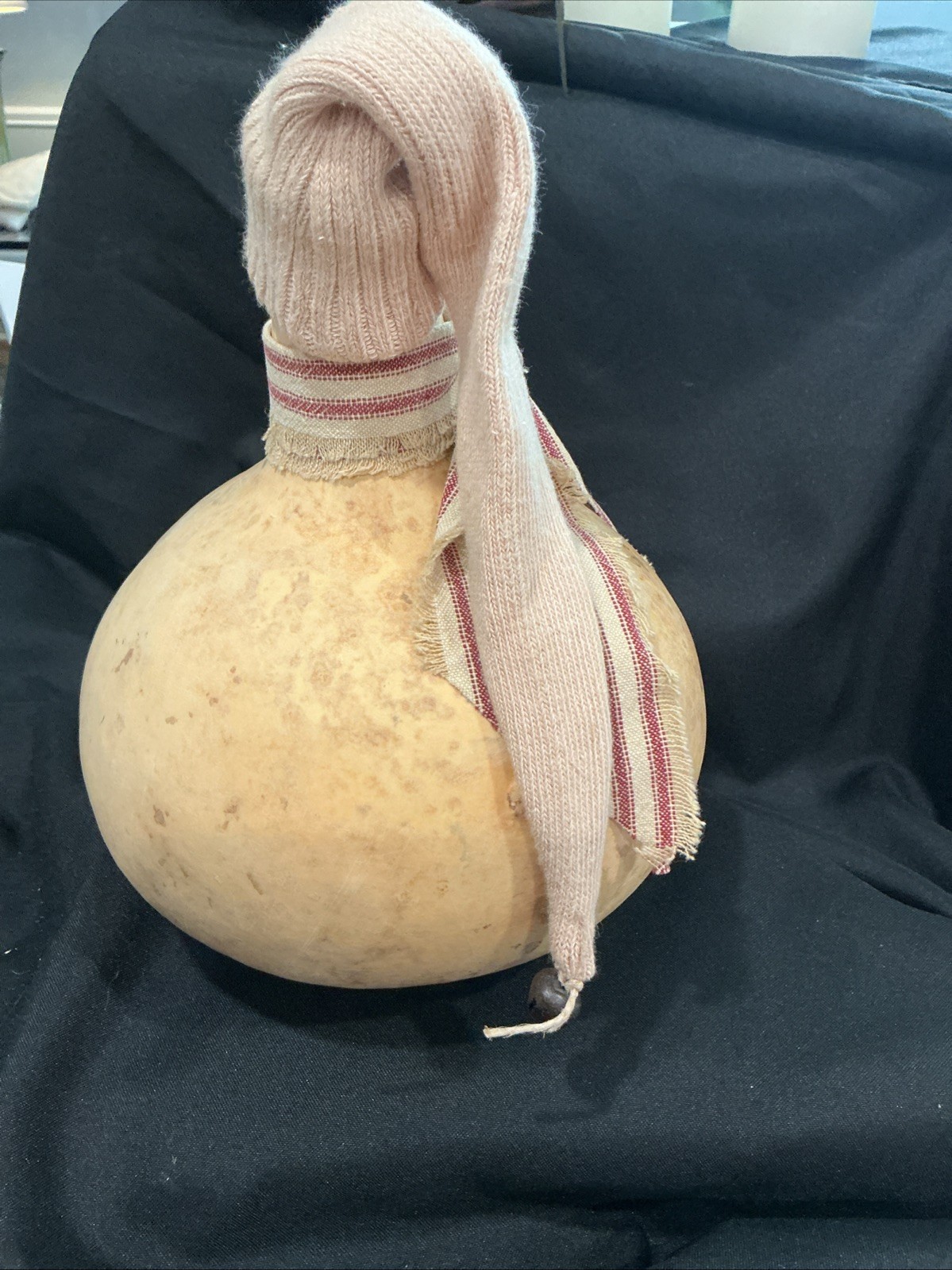 как выглядит Folk Art Snowman Gourd With Scarf And Sock Hat With Bell фото