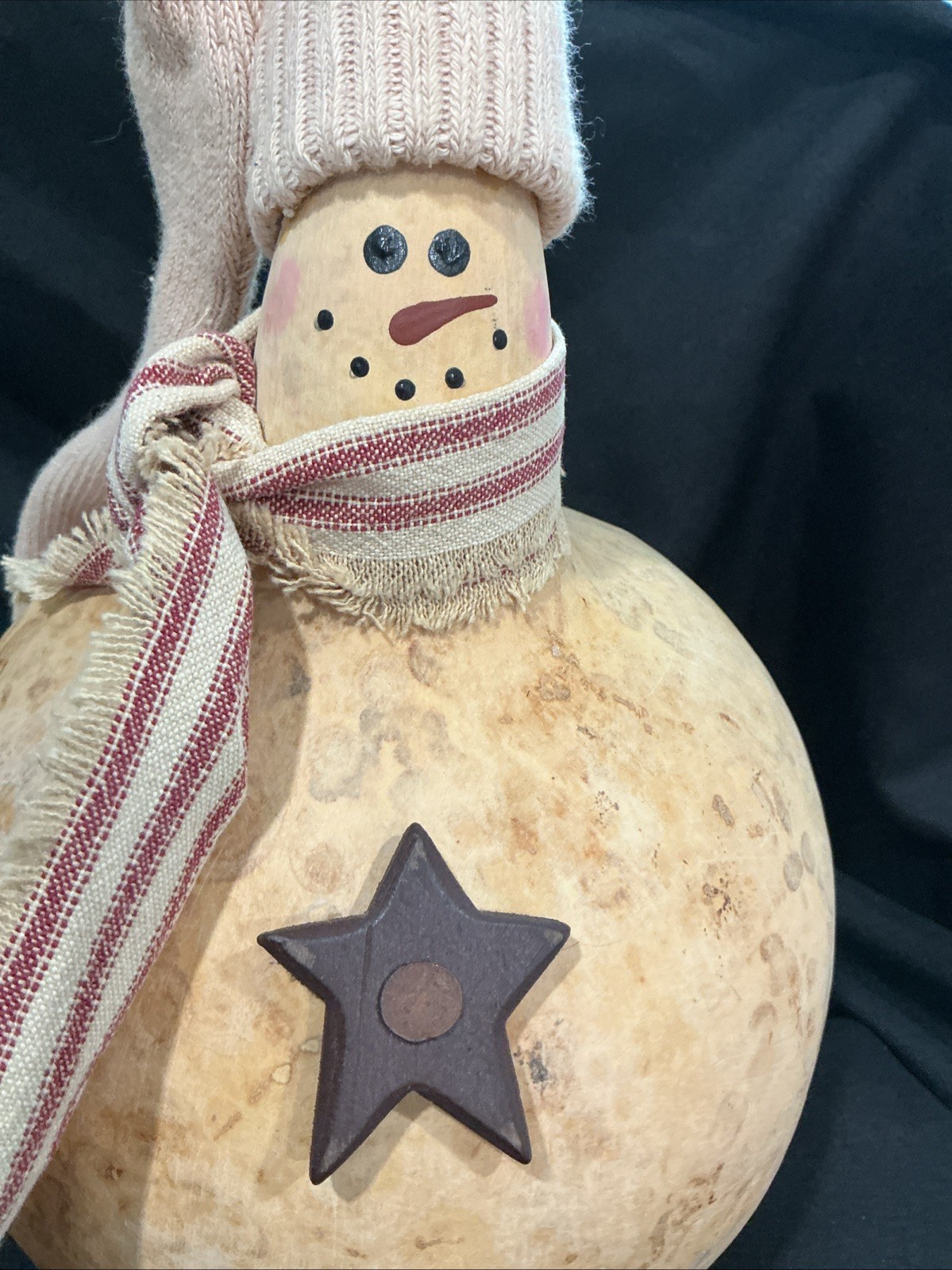 Folk Art Snowman Gourd With Scarf And Sock Hat With Bell