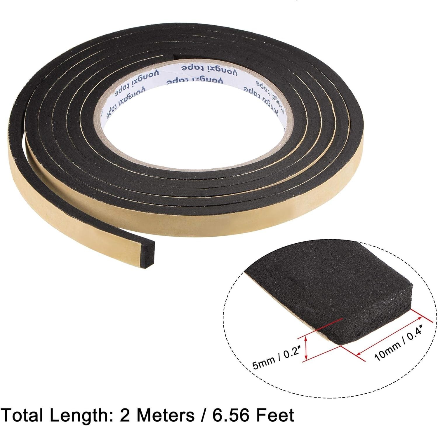 как выглядит Sealing Foam Tape 10mm Wide 5mm Thick 2m/6.56ft Long, EVA Self Adhesive Weath... фото