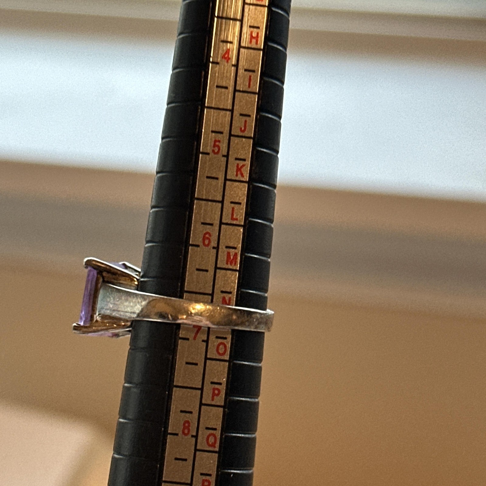 Sterling Silver 925 Square Princess Cut Purple Stone Solitaire Ring NF Marked