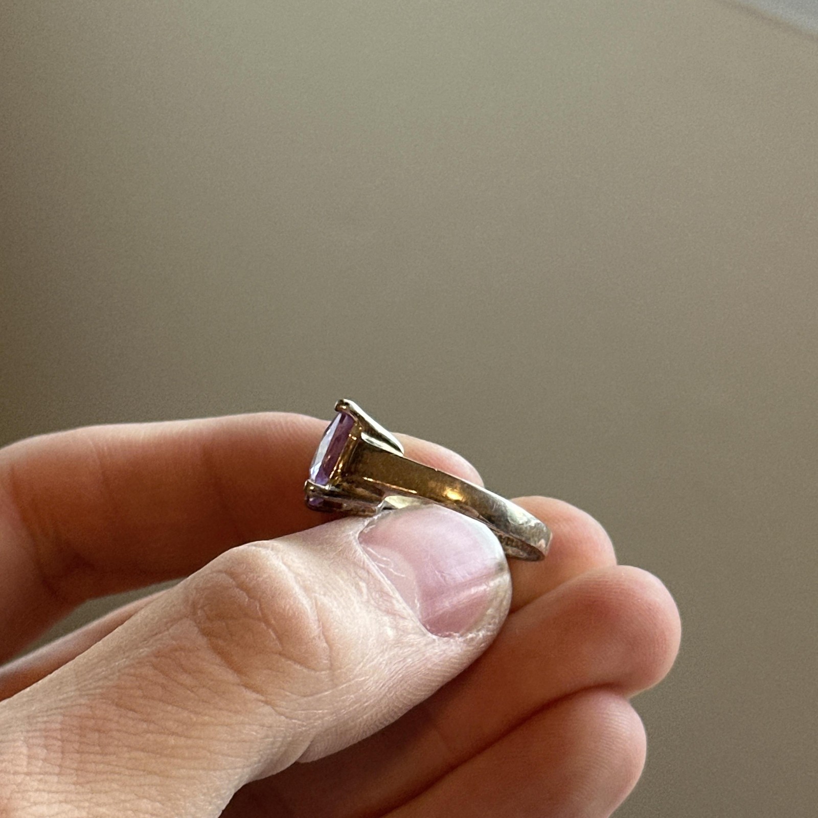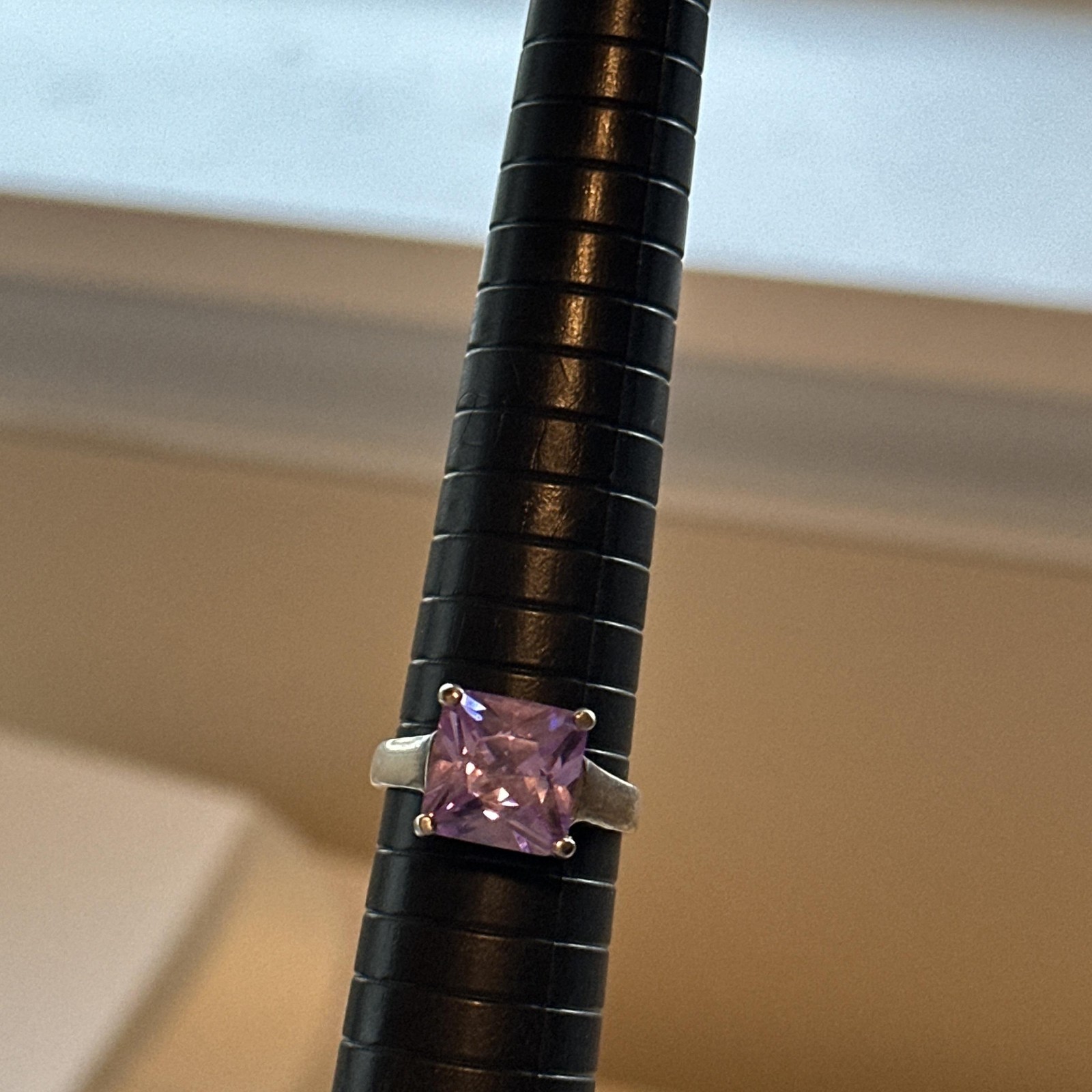 как выглядит Sterling Silver 925 Square Princess Cut Purple Stone Solitaire Ring NF Marked фото