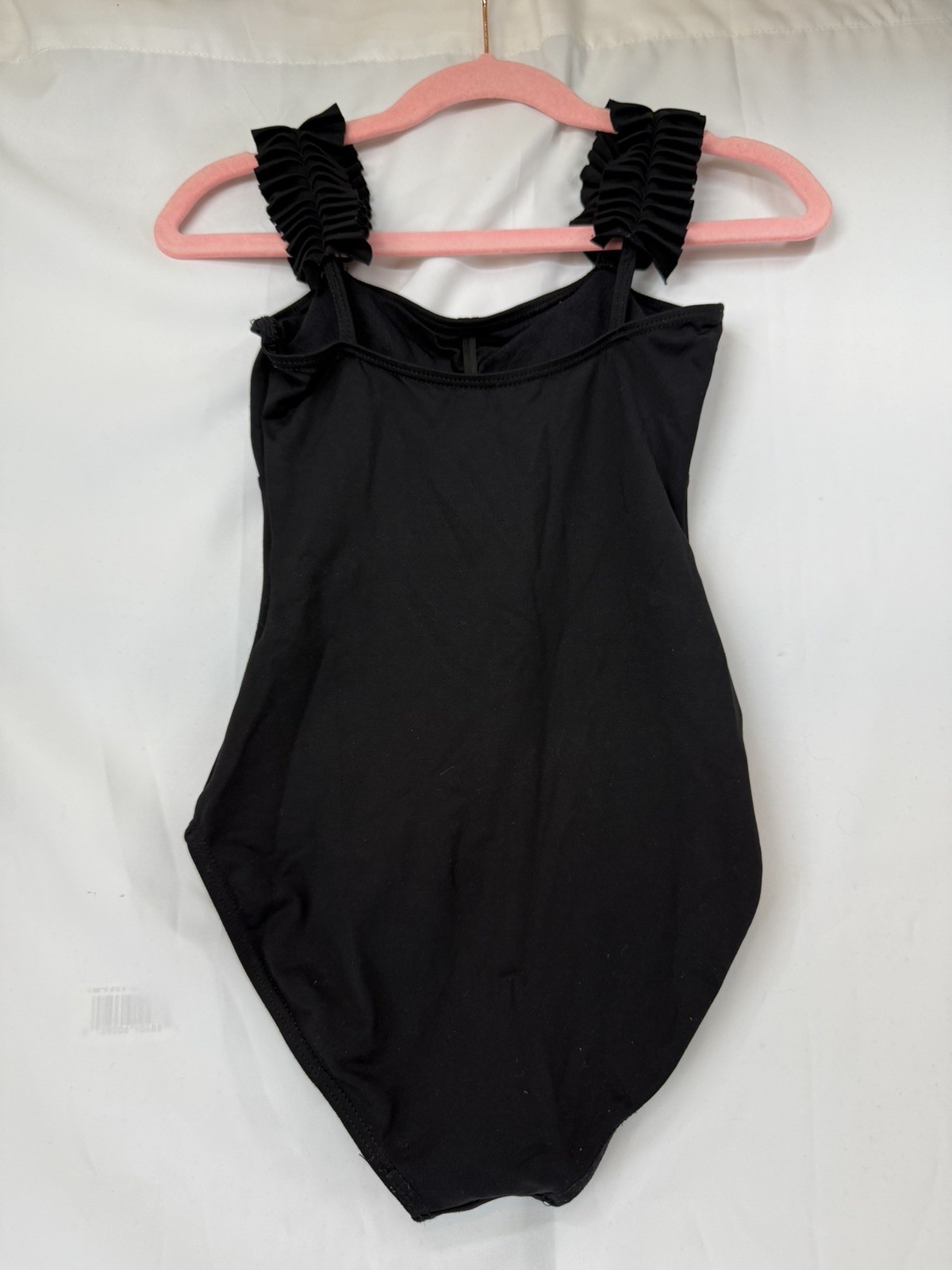 как выглядит So Danca black leotard with ruffle shoulders child 12-14 фото