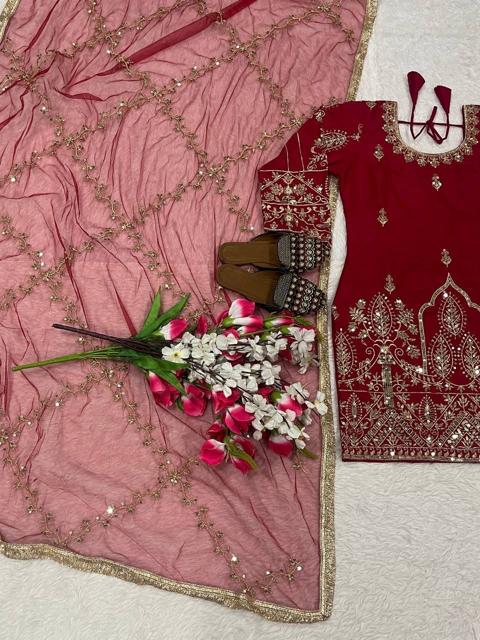 Latest Natural Crepe Silk Maroon Salwar Kameez With Dupatta For Ethnic Wear