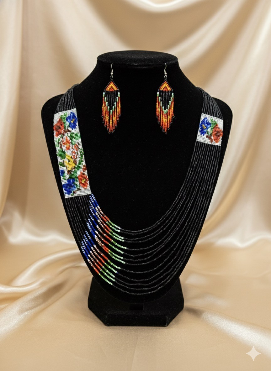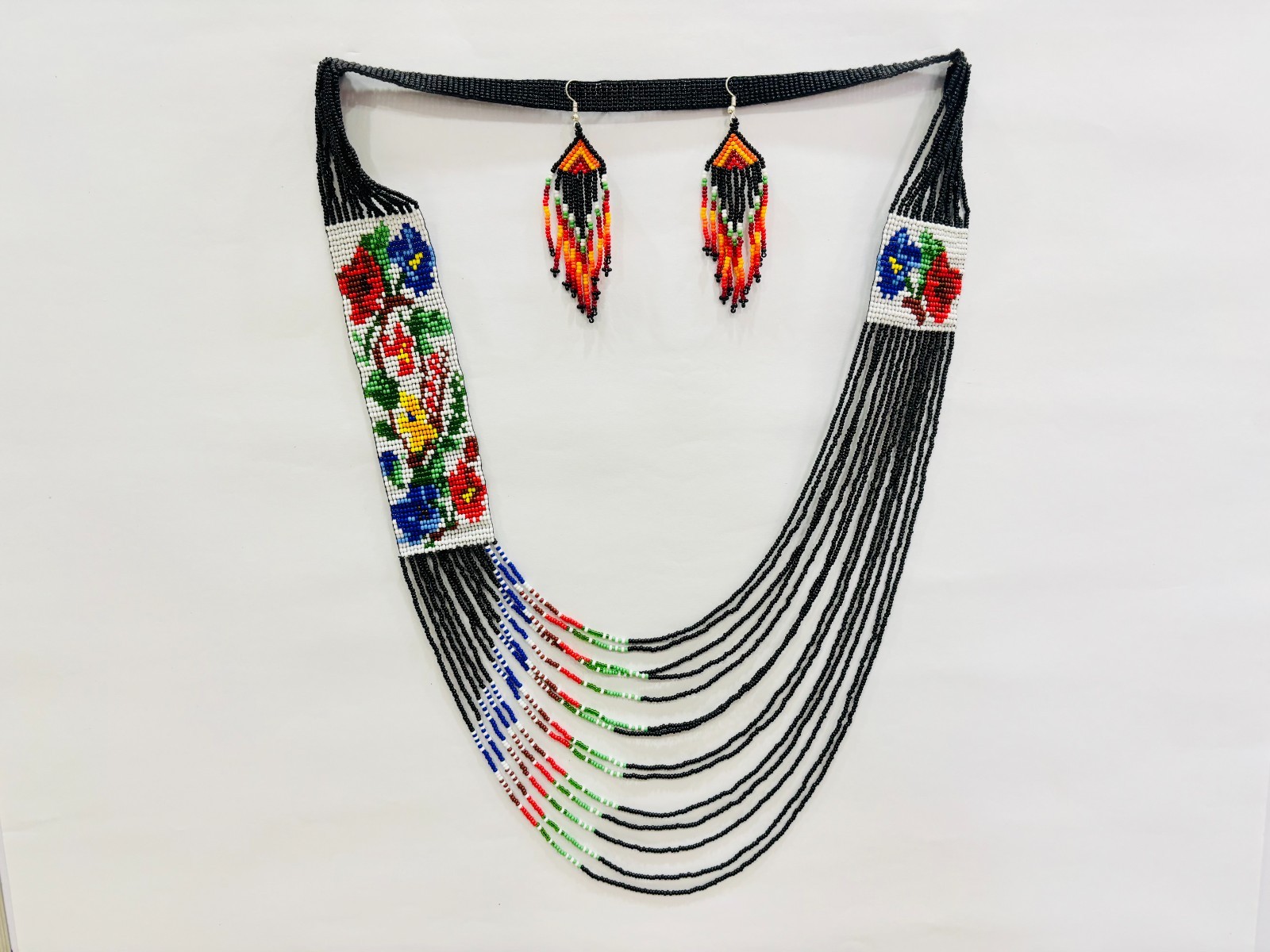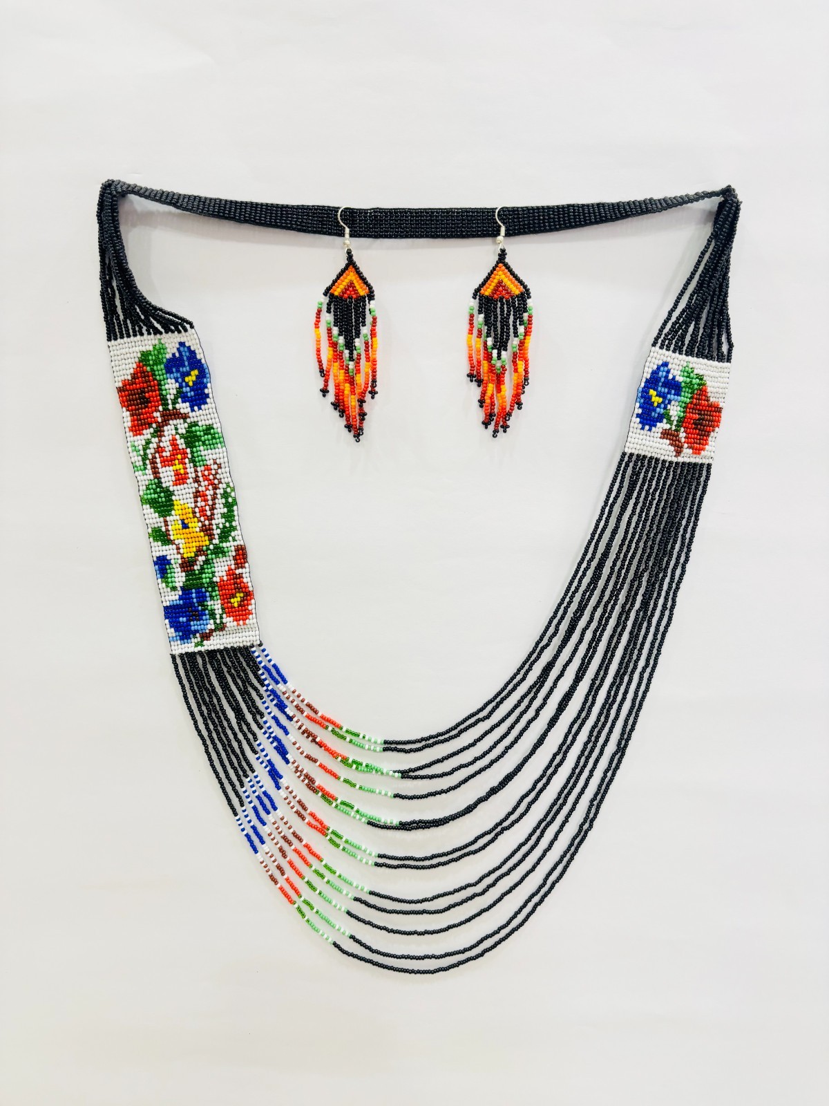 Handmade Seed Bead Necklace Earrings Set Boho American Style Beaded Jewelry