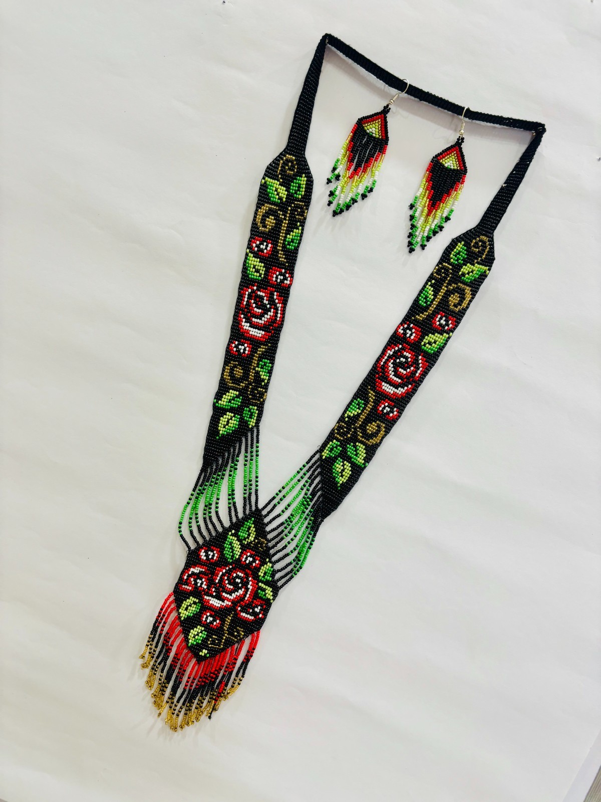 Handmade Seed Bead Boho Necklace Earrings Set American Style Beaded Jewelry