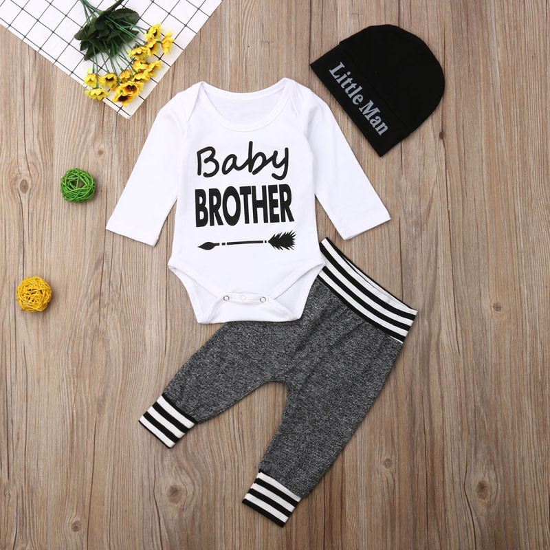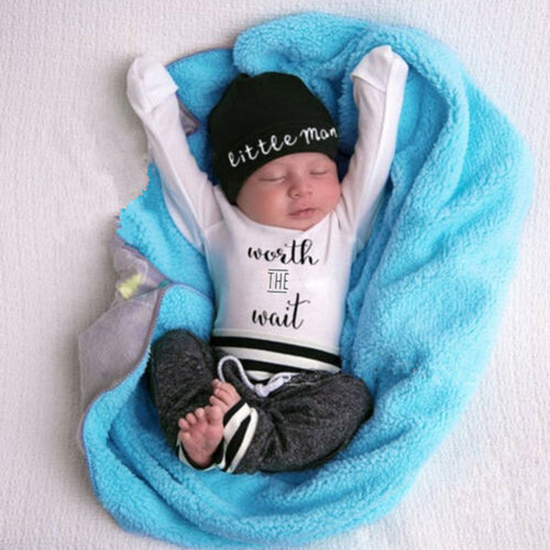Newborn Baby Boys Letter Bodysuit Jumpsuit Romper Pants Hat 3PCS Outfits Set
