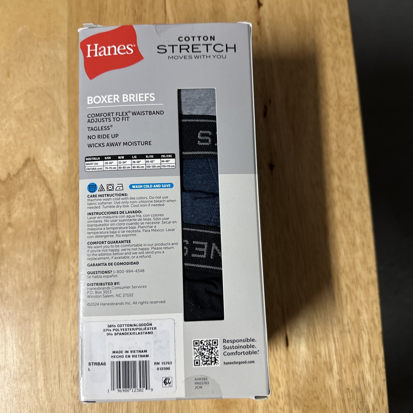 Hanes Men s Size Large 6-Pack Tagless Boxer Briefs Cotton Stretch Soft Cool