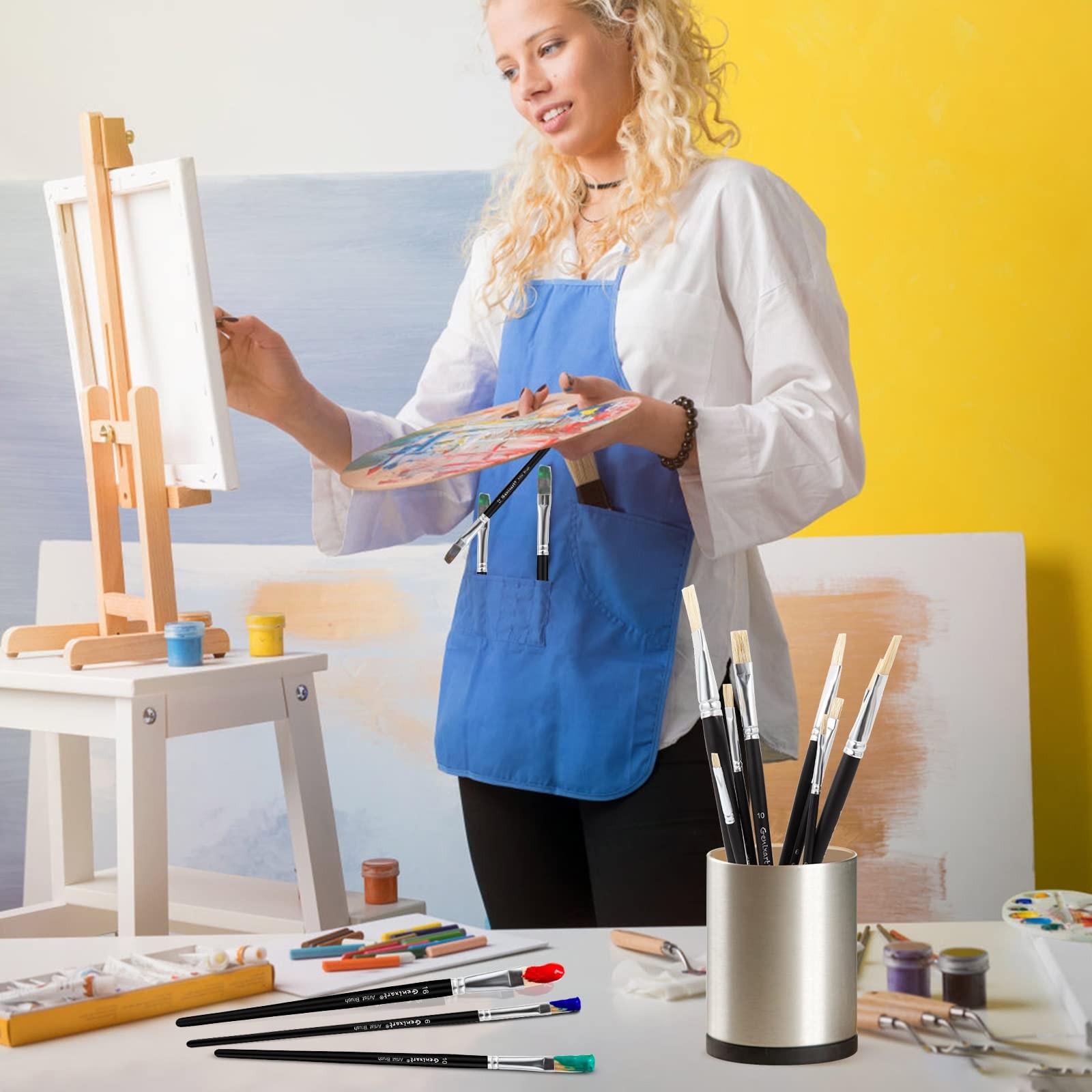 как выглядит Acrylic Oil Watercolor Paint Brush Set 9 PCS Flat 100 Natural Hog Bristle фото