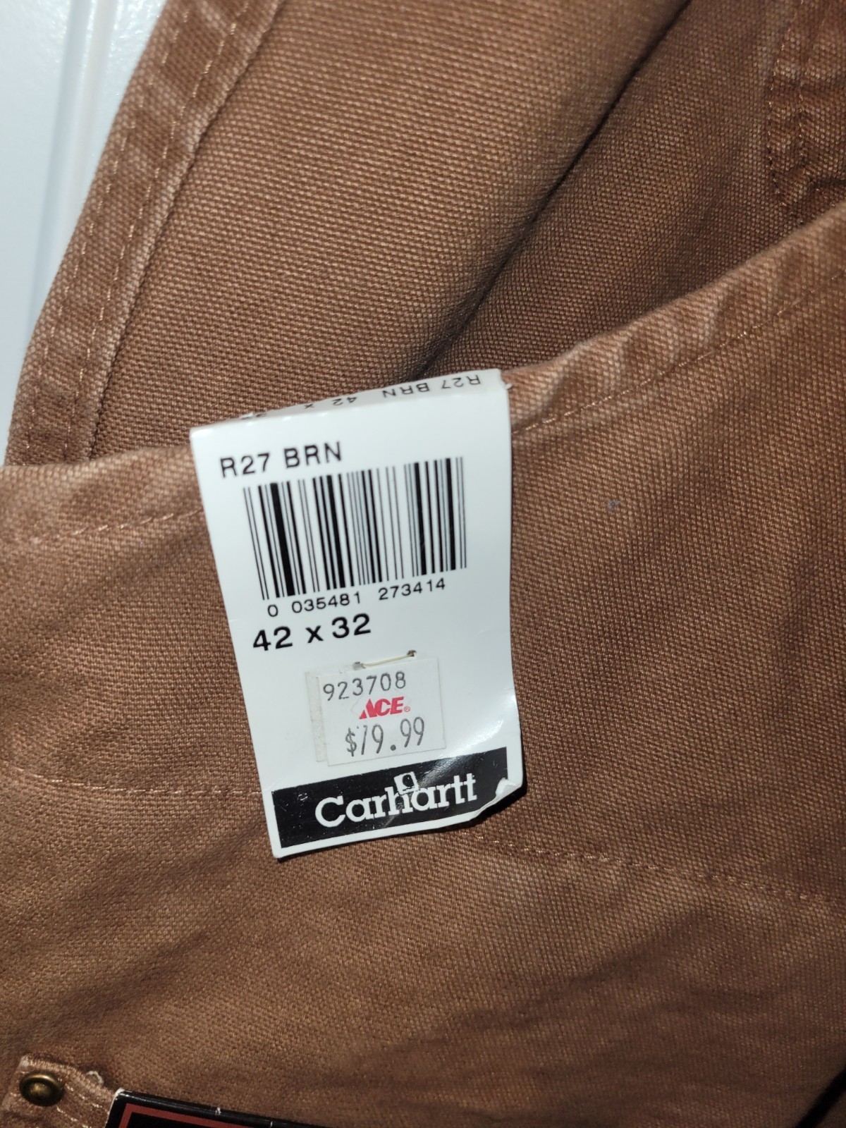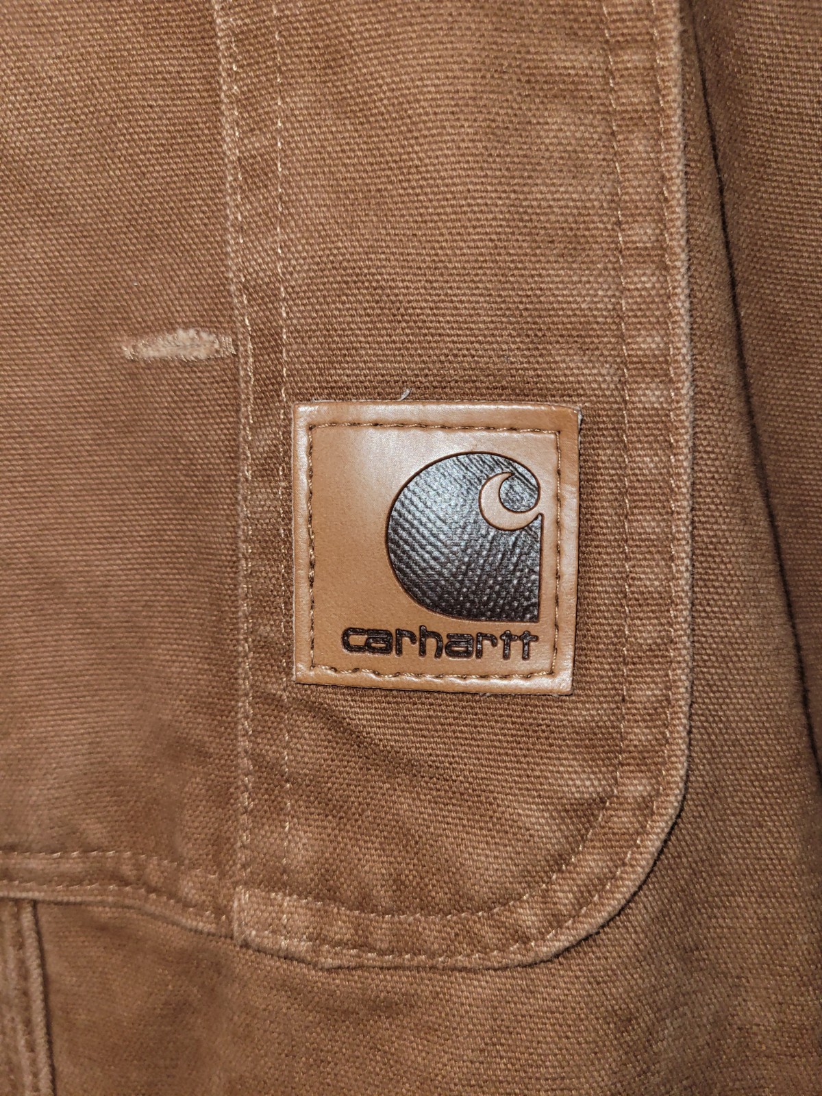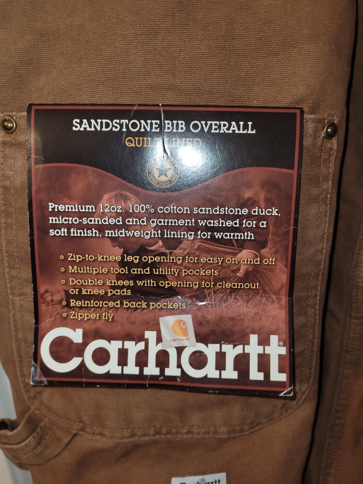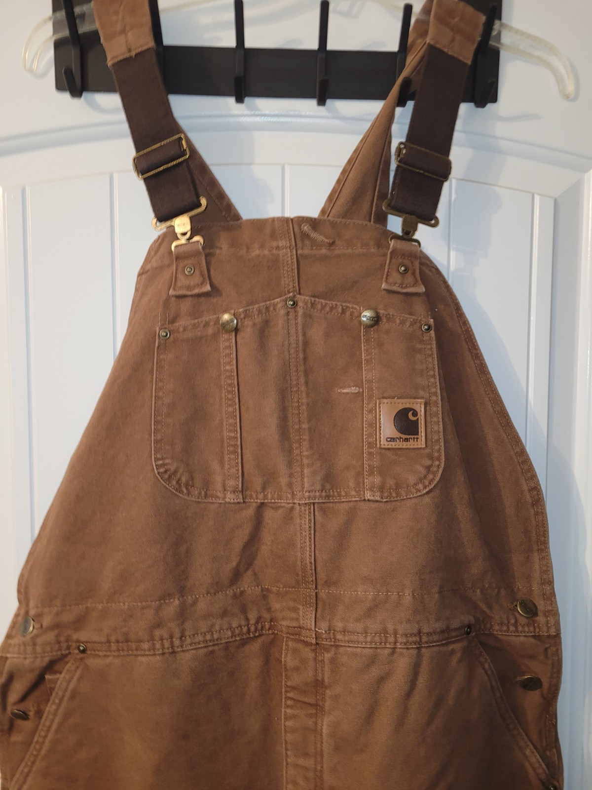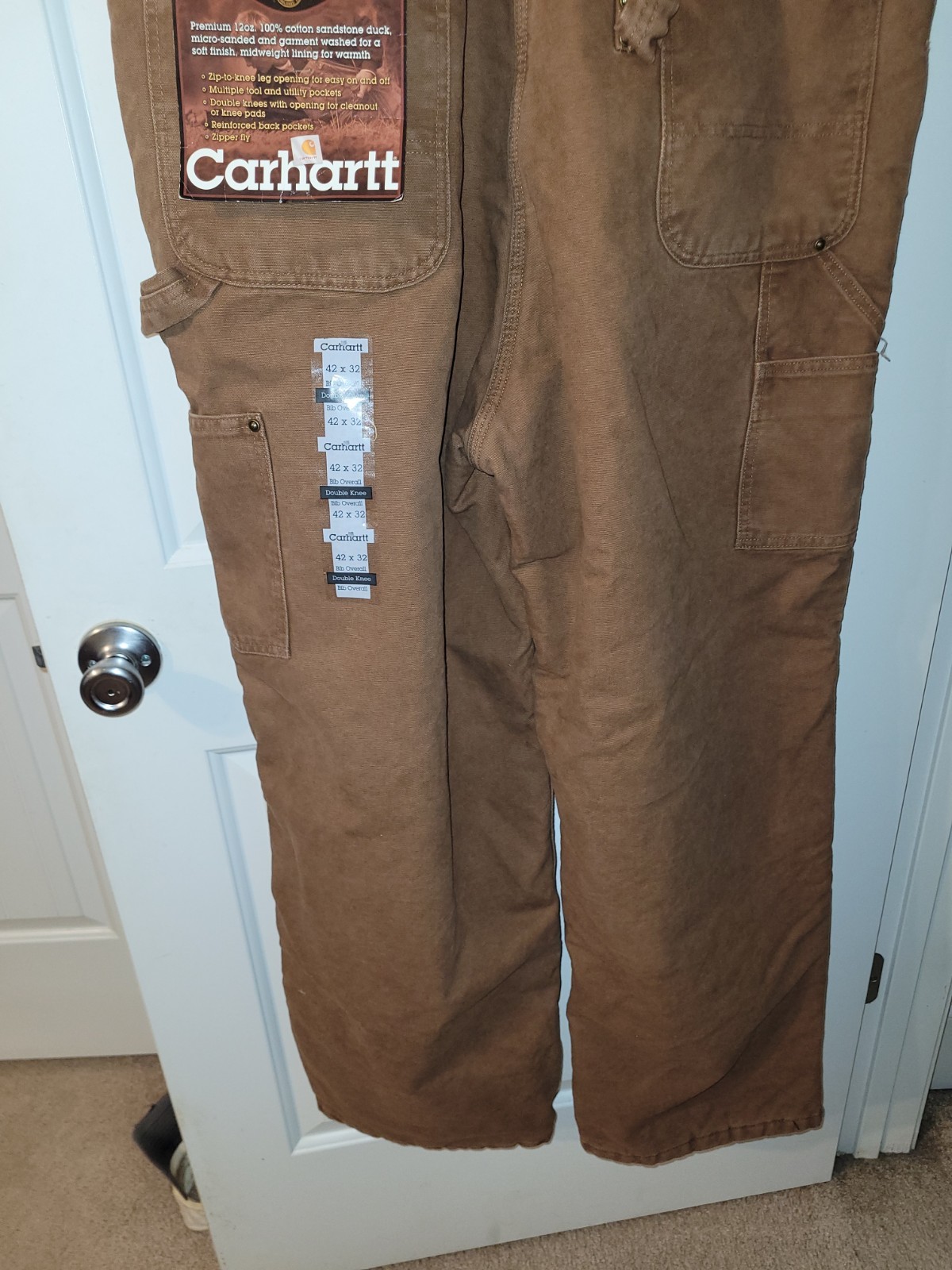 как выглядит Carhartt Bib Overalls Mens 42x32 Brown Sandstone Duck Double Knee USA R27 BRN фото