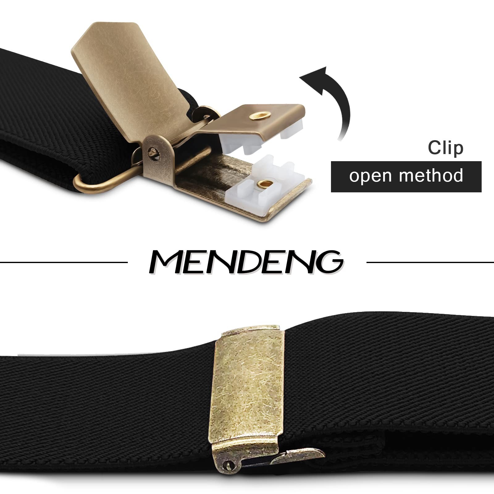 Black Suspenders for Men Heavy Duty Big and Tall Clips Retro Leather Braces P...