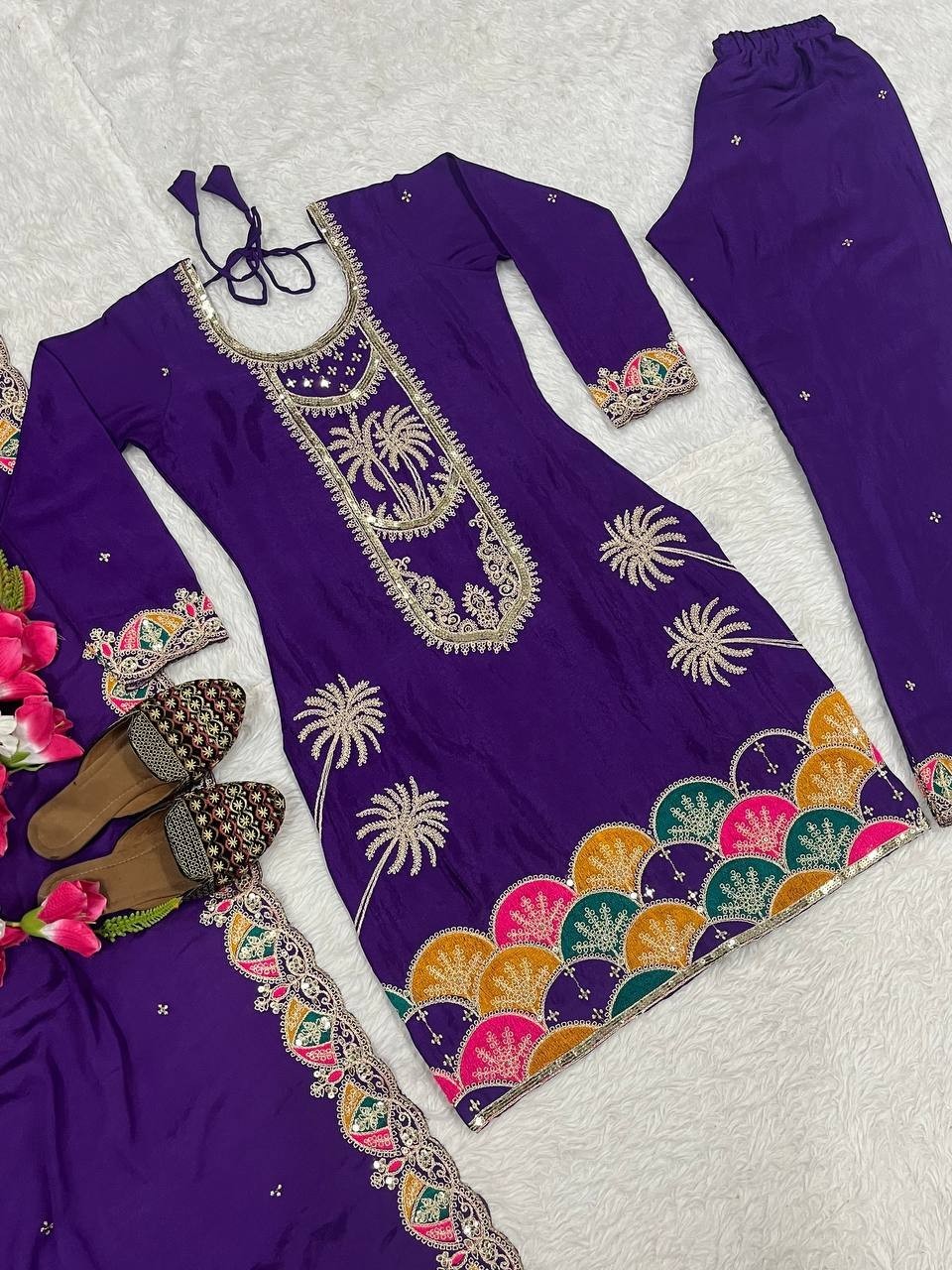 как выглядит Stylish Look Purple Heavy Chinnon Salwar Kameez With Dupatta For Women Girls фото