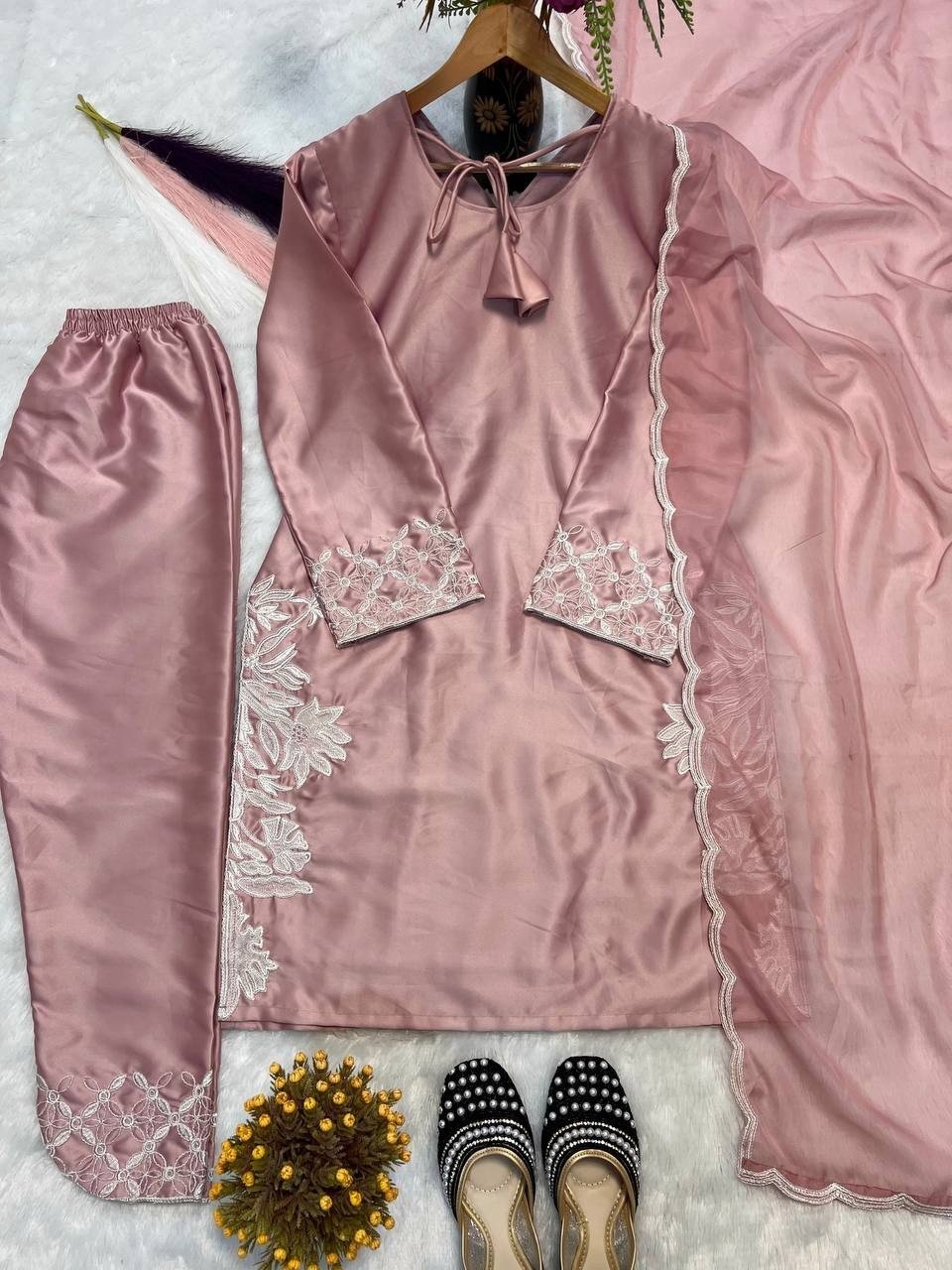 как выглядит Stylish Dusty Pink Natural Crepe Silk Salwar Kameez And Dupatta For Function фото
