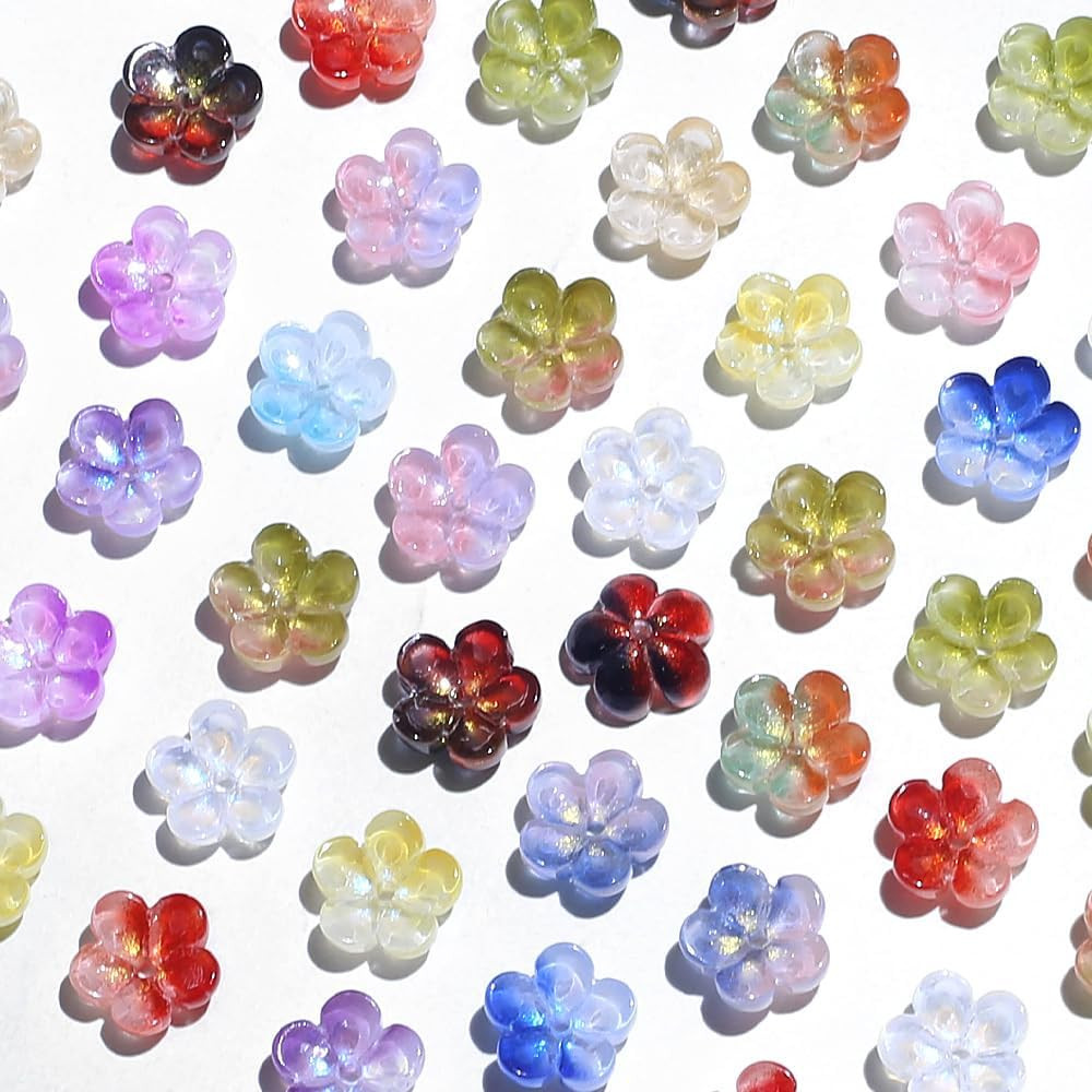 50PCS Colorful Flower Beads Charm Bulk for Jewelry Making Cute Floral Charms Spa