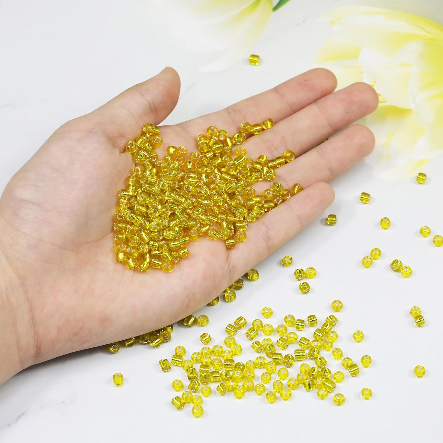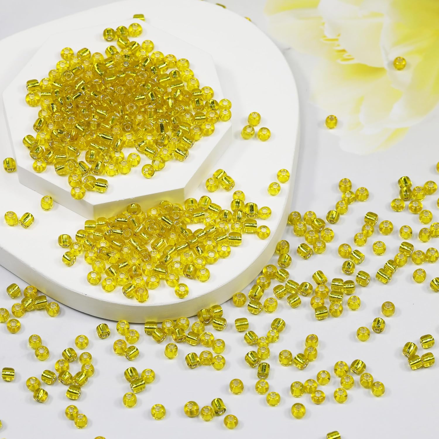 • Yellow Sliver Lined Color Size 4mm Seed Beads About 1200pcs/100Grams in Bag, 6/0