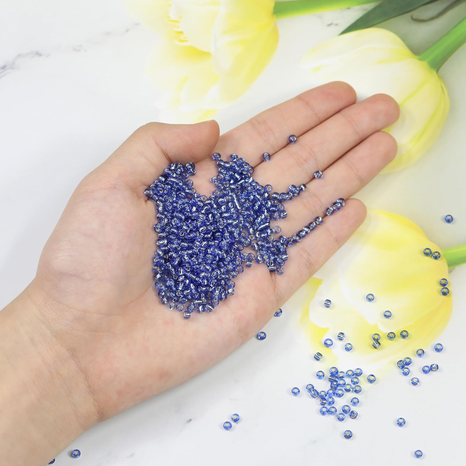 • Blue Sliver Lined Color Size 3mm Seed Beads About 3600pcs/100Grams in Bag, 8/0 G