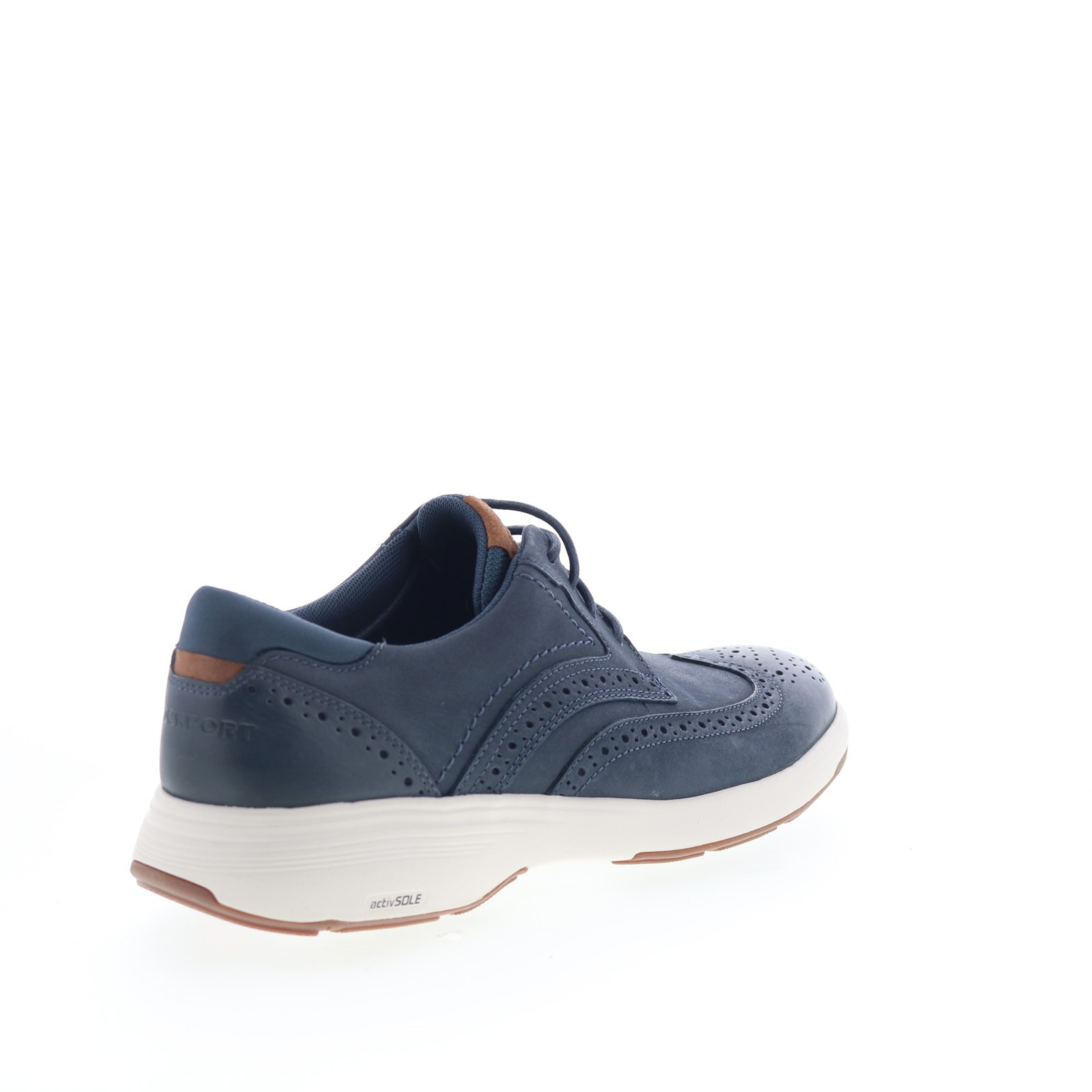Rockport Noah Wingtip Mens Blue Leather Oxfords Wingtip Brogue Shoes