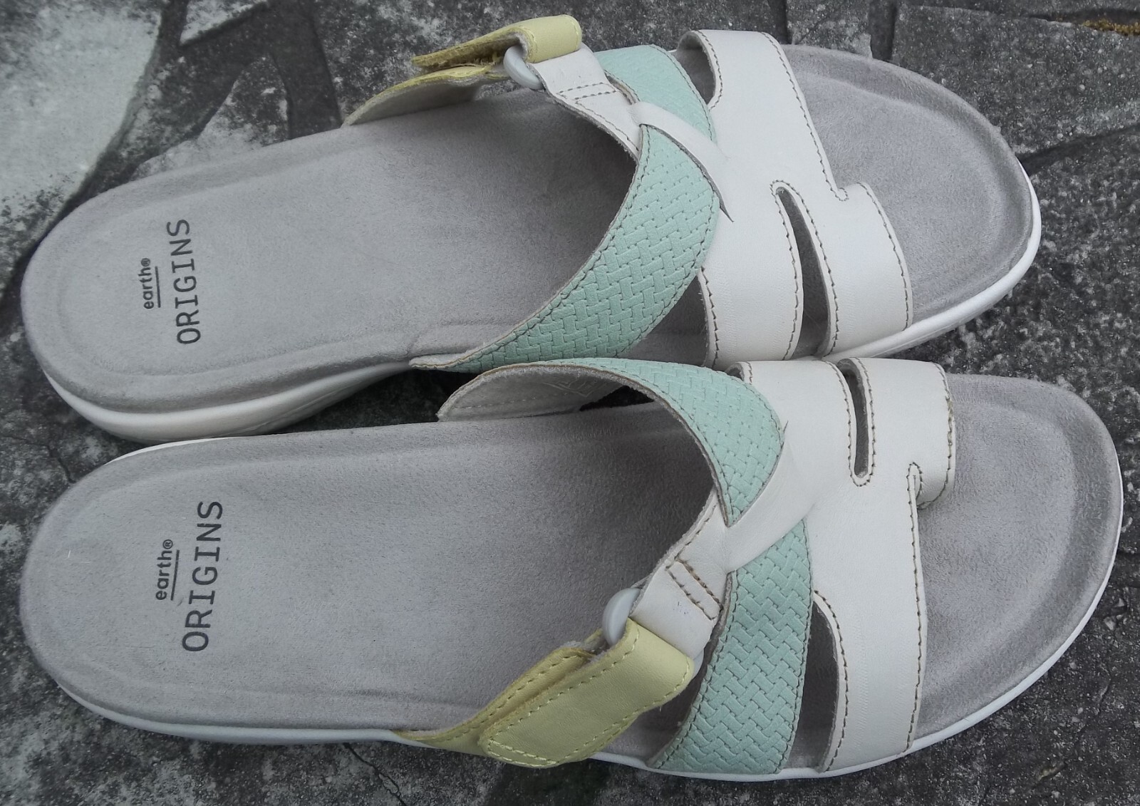 NEW Earth Origins Samara Sandal 8 M Sand White Slip-On Memory Foam Adjust Strap
