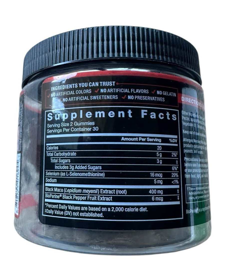Force Factor Black Maca 60 Gummies 400mg Enhance Sex Drive Passion Berry Flavor