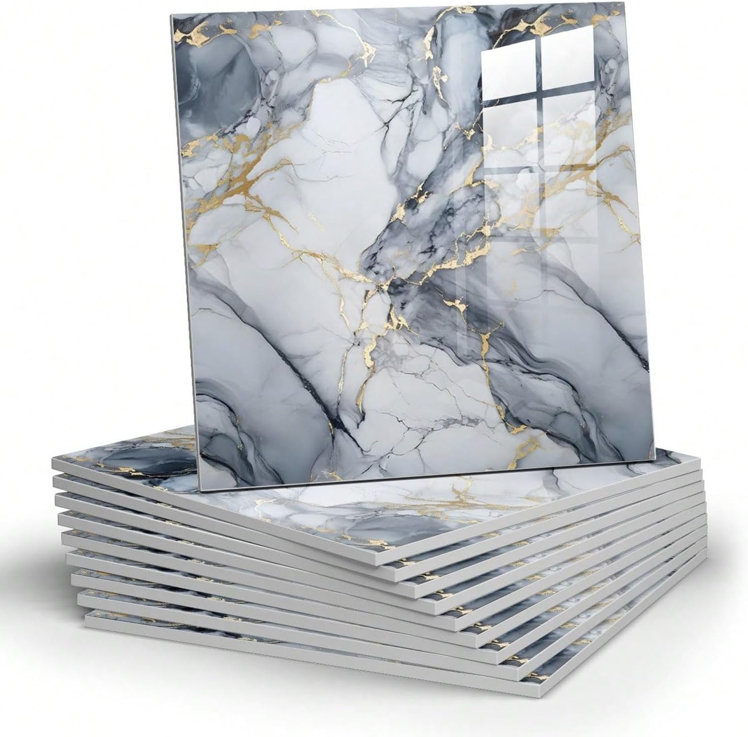 10pcs Marble Peel and Stick Backsplash Waterproof Washroom Wall Panels, Peel and