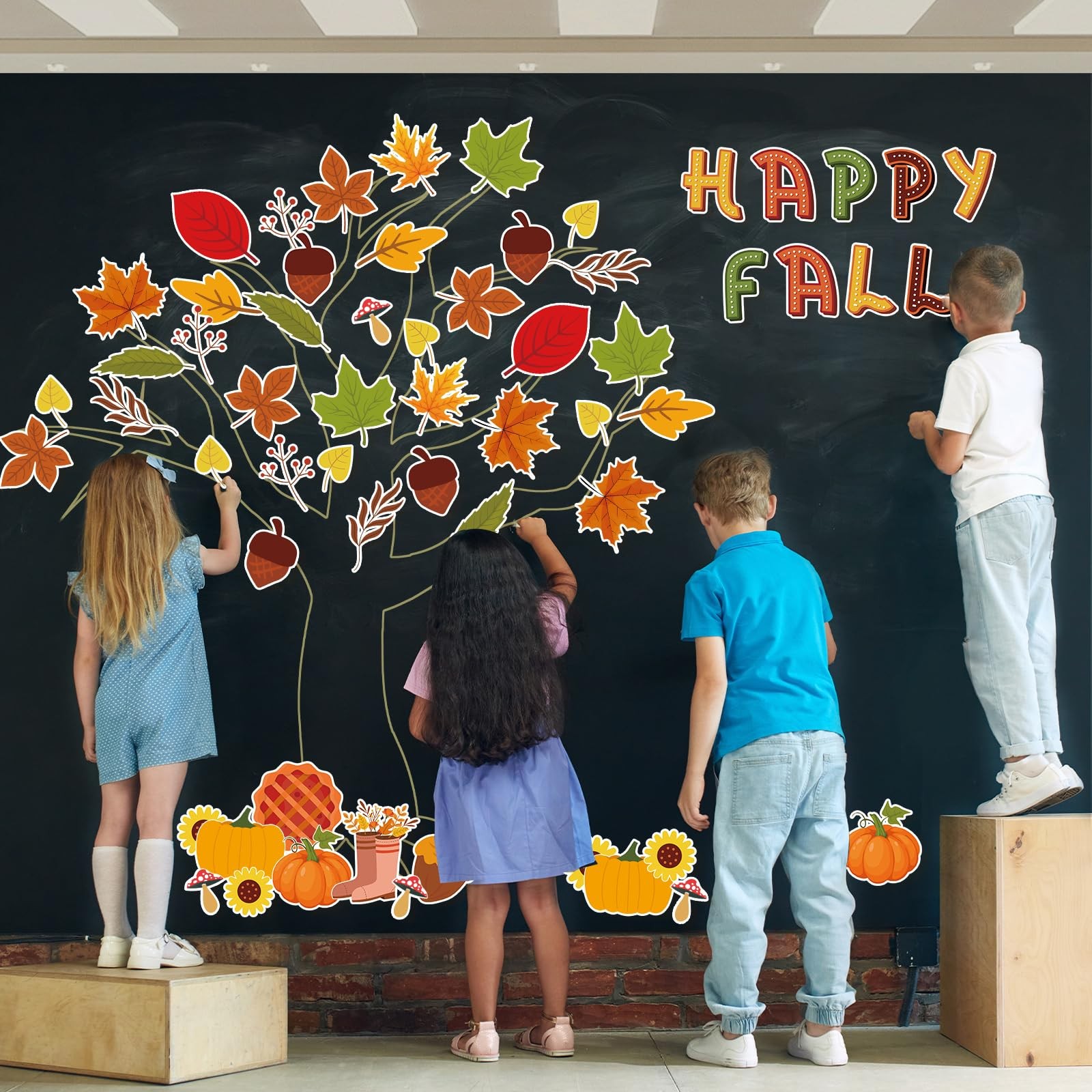 Happy Fall Bulletin Board Decorations Set 60Pcs Leaves Pumpkins Hazelnuts Cut...