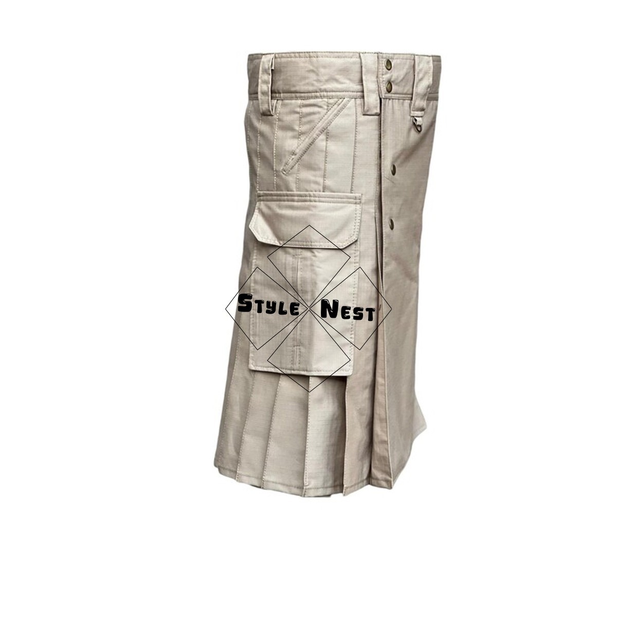 Ripstop Cotton Khaki Utility Kilt with Cargo Pockets Sizes 28-60